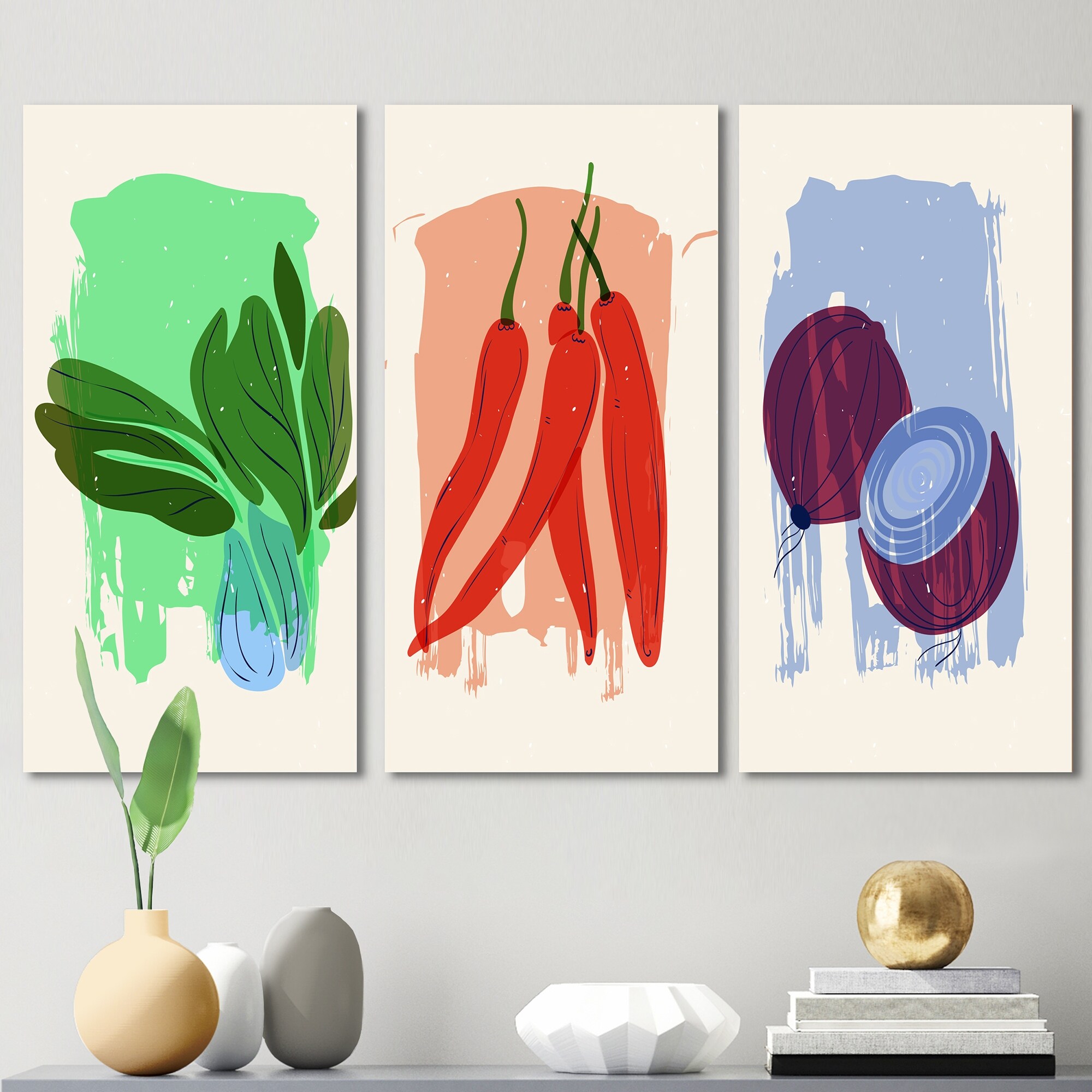 Designart 'Organic Vintage Hipster Vegetables I' Mid-Century Modern Art Set of 3 Pieces