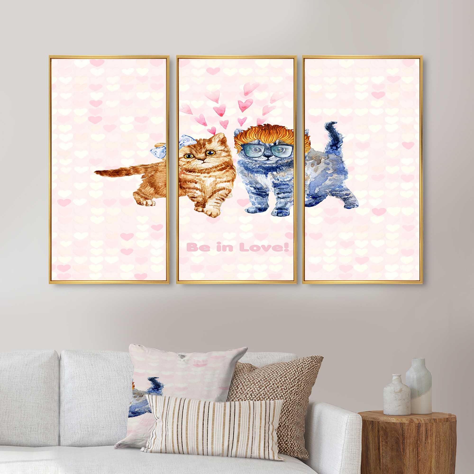Designart "Two Little Hipster Kitten" Children's Art Framed Canvas Wall Art Print Set of 3 - 4 Colors of Frames