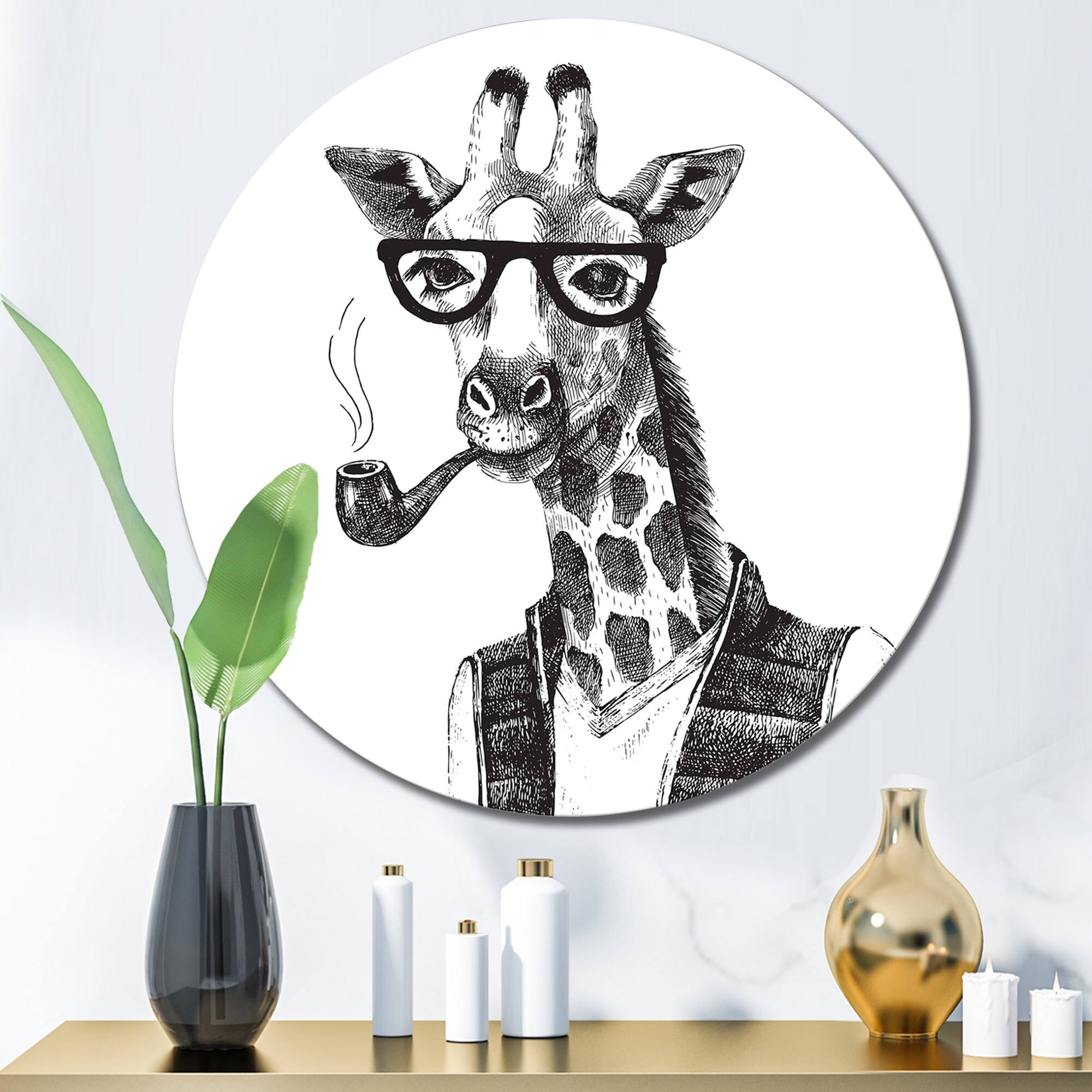 Designart 'Portrait Of Giraffe Hipster' Traditional Metal Circle Wall Art