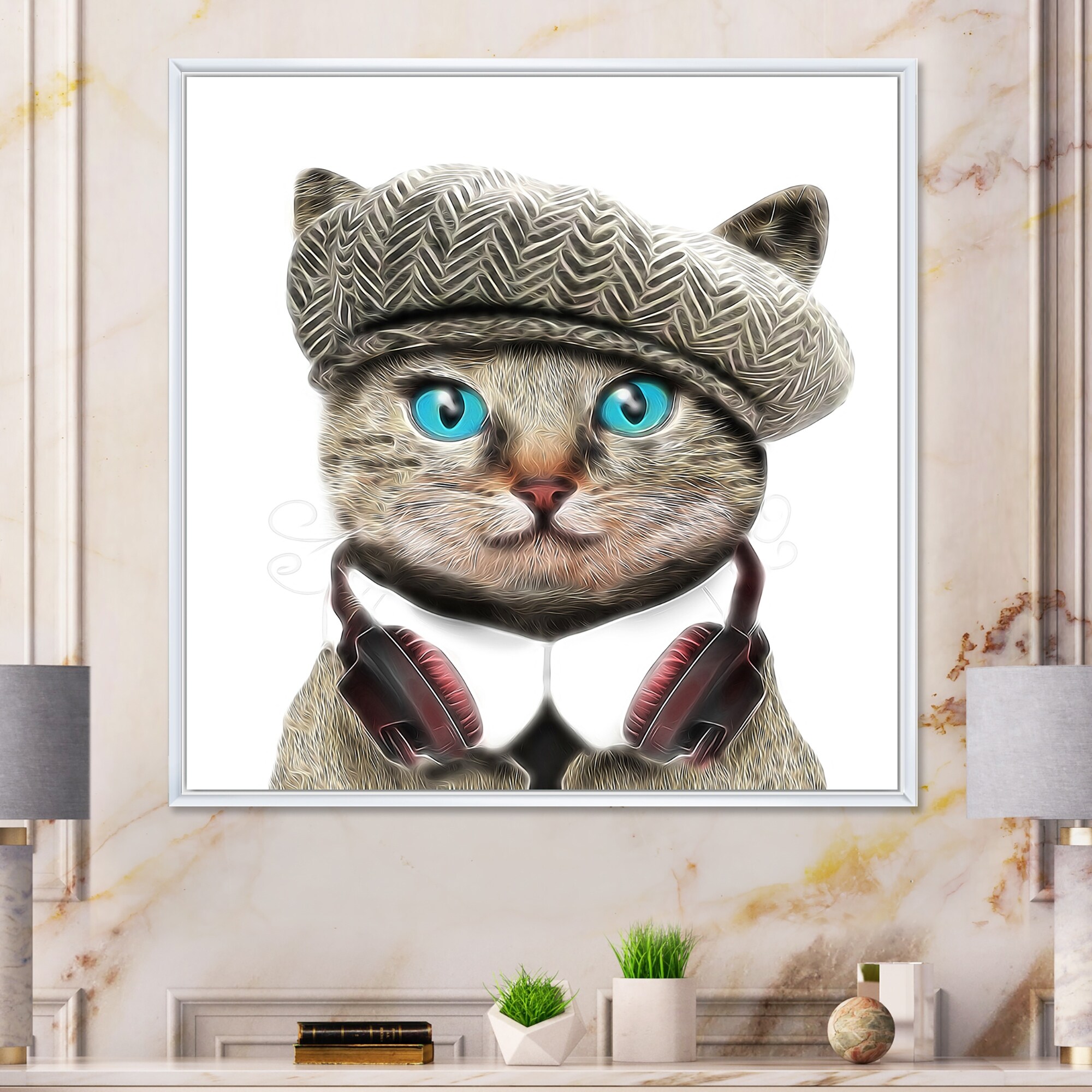 Designart "Hipster Funny Cat With Moustache" Children's Art Framed Canvas Art Print