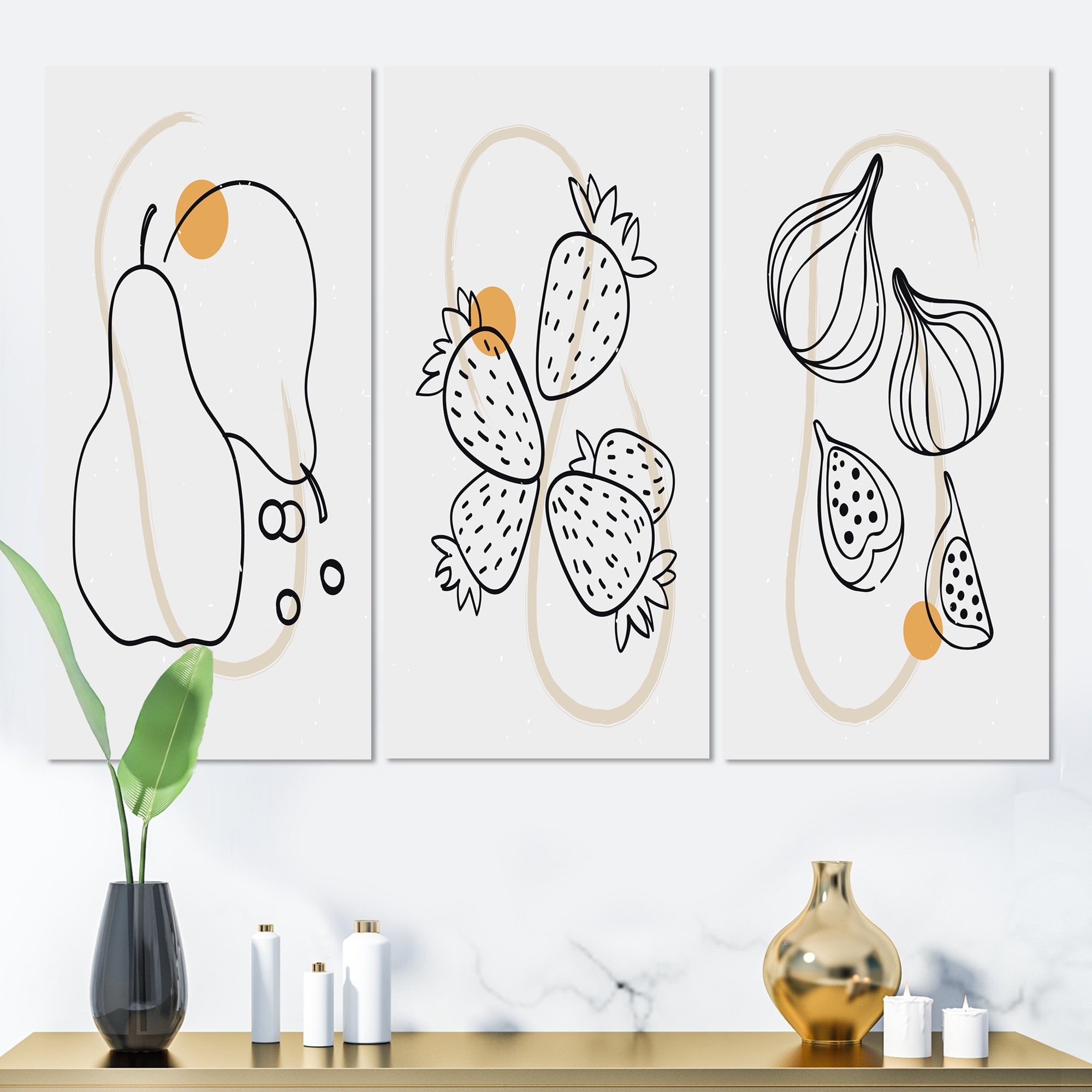 Designart 'Organic Vintage Hipster Fruits III' Mid-Century Modern Art Set of 3 Pieces