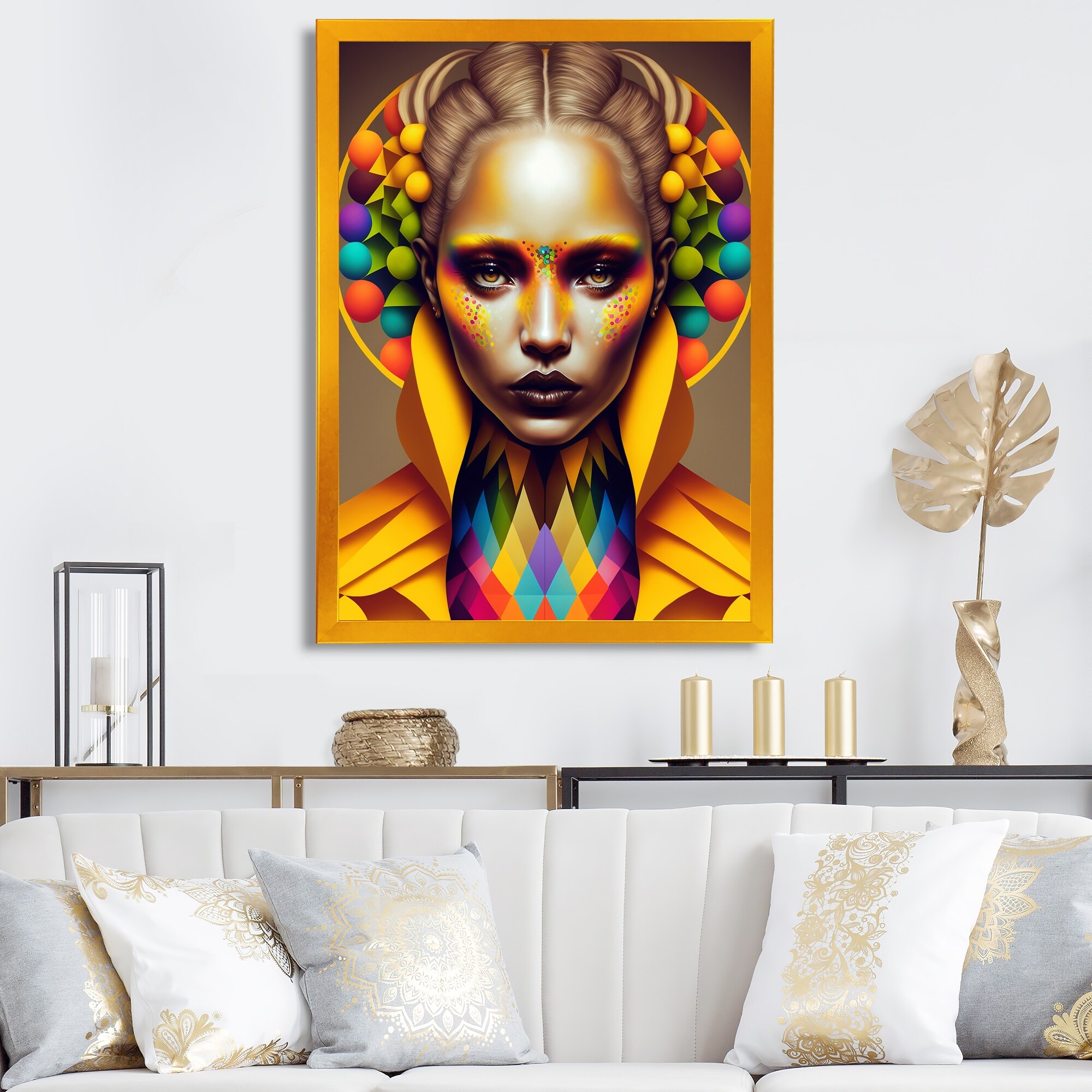 Designart "Retrofuturistic Contemporary Hipsters VII" Woman Pop Art Framed Wall Art Living Room