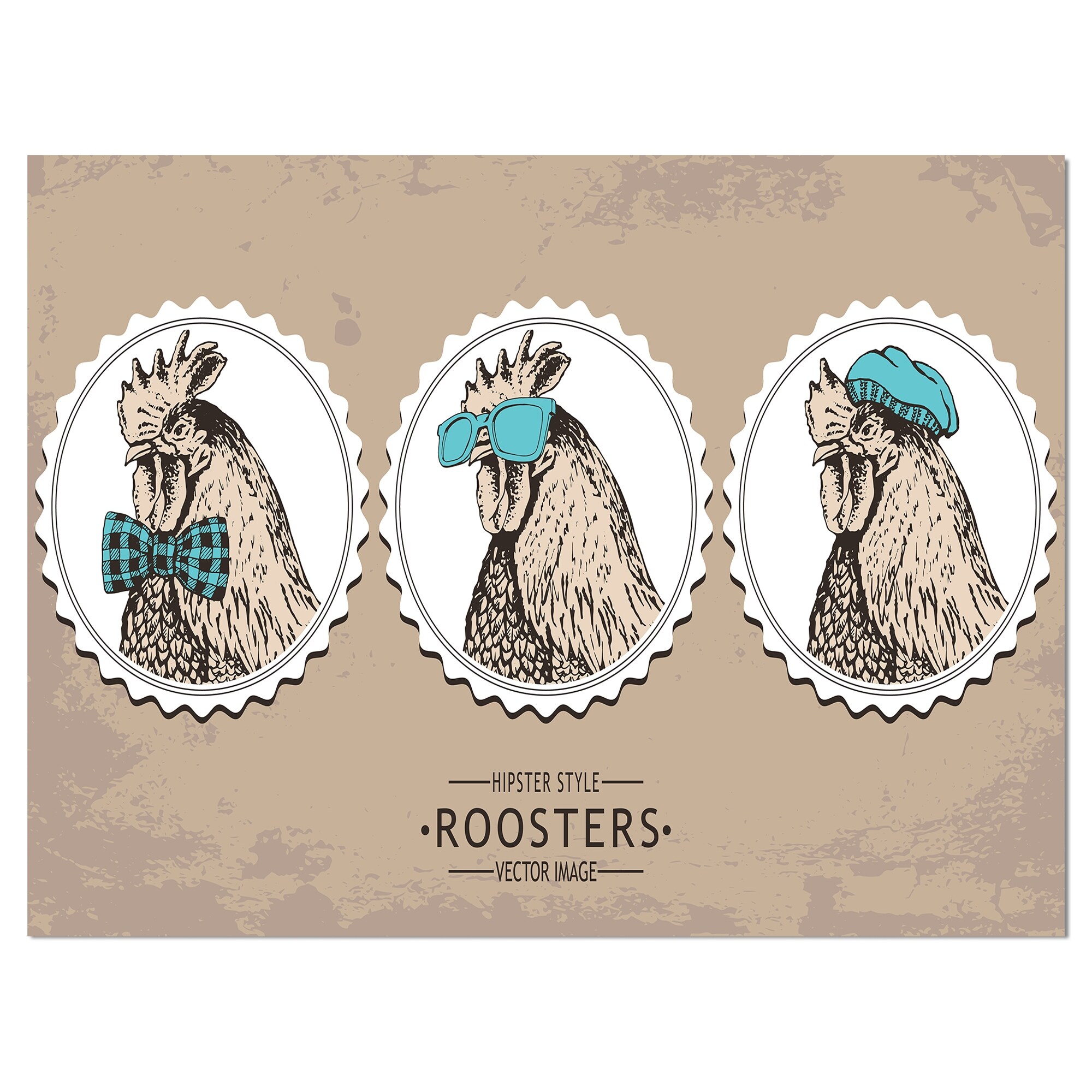 Designart "Handdrawn vintage rooster hipster style" Illustration of Farmhouse Animals of Print on Wrapped Canvas