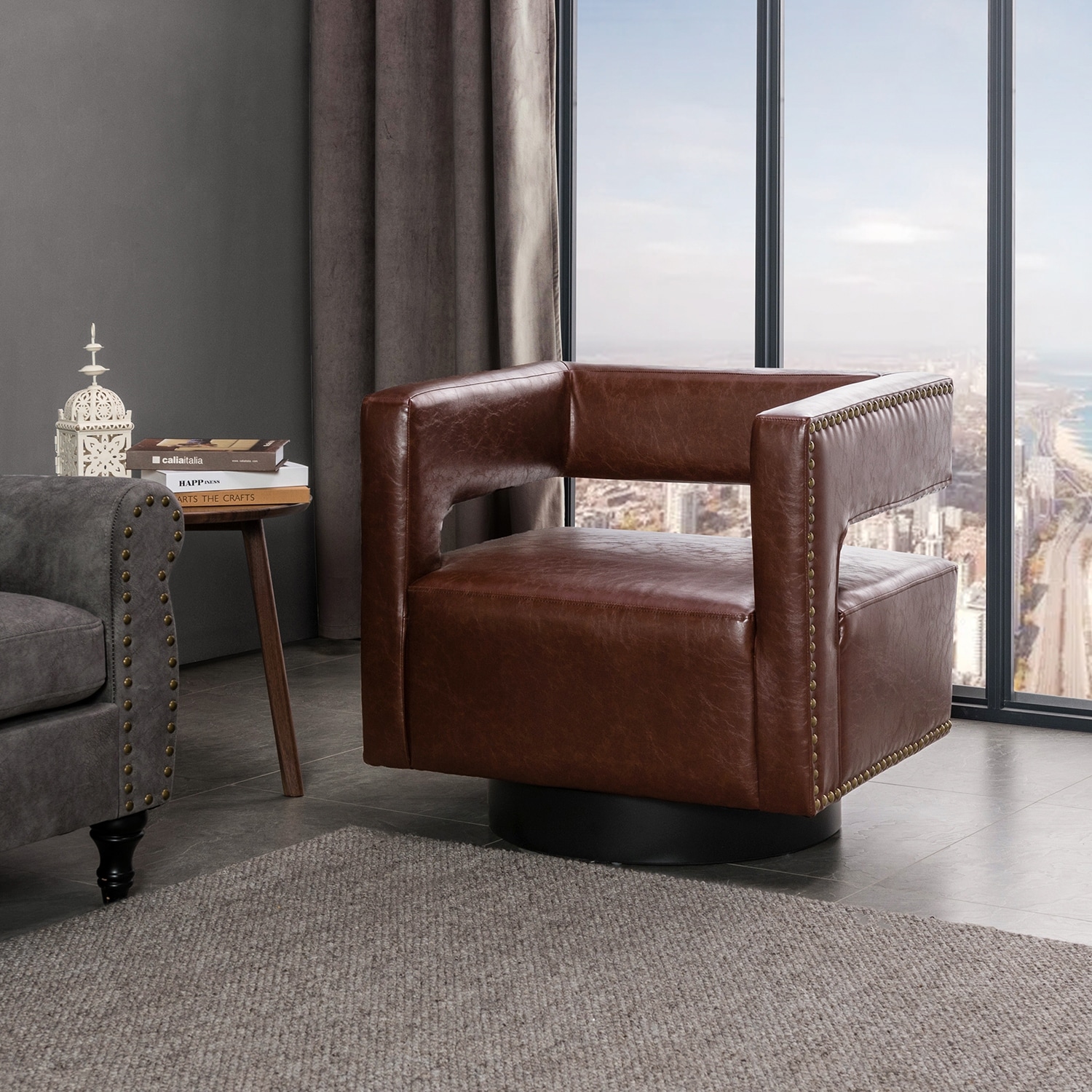Bortolotti Contemporary Upholstery Swivel Nailhead Trim Barrel Chair with Open Back and Metal Base by HULALA HOME