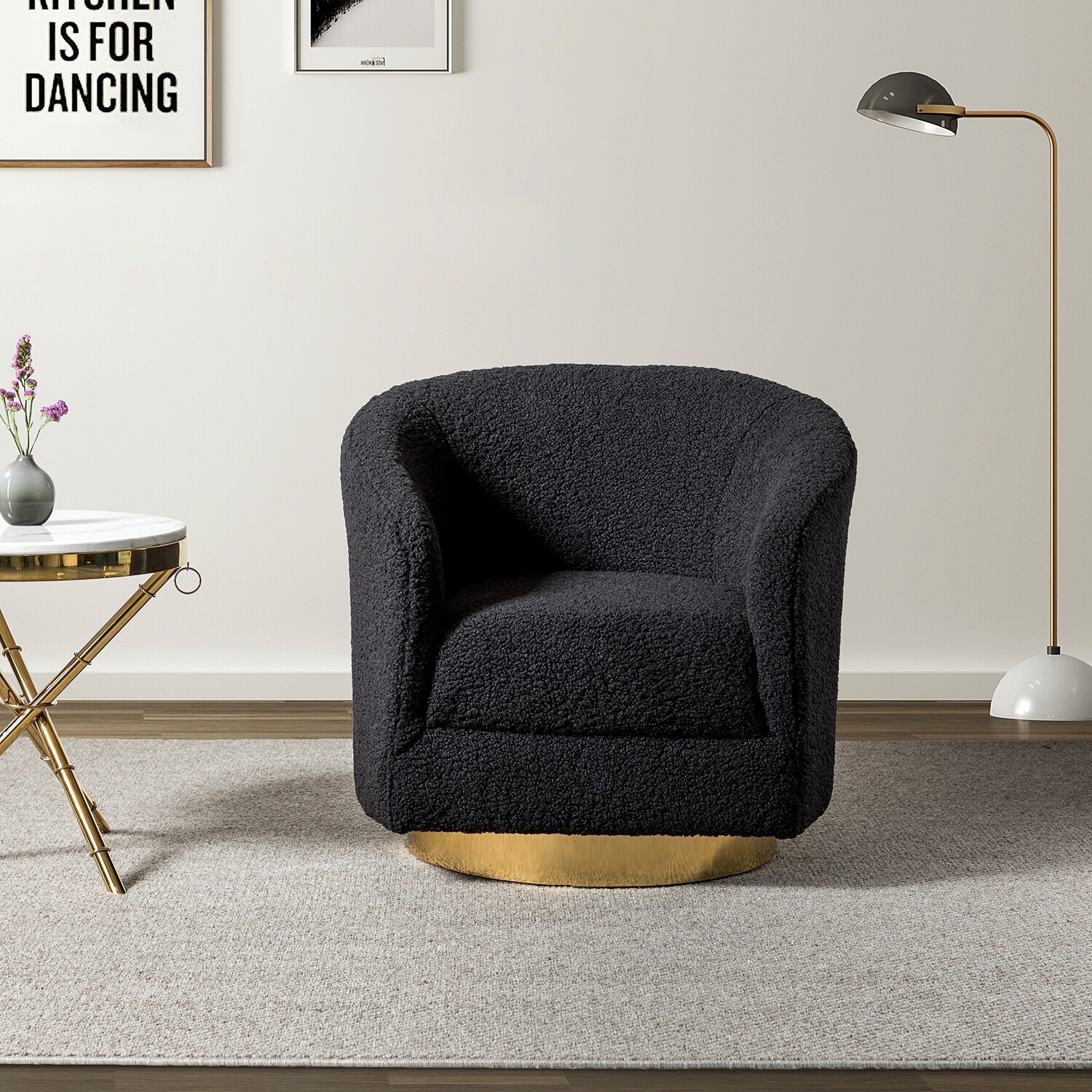 Eleuterio Swivel Elegant Upholstered Accent Barrel Chair with Metal Base and 8 Color Options by HULALA HOME
