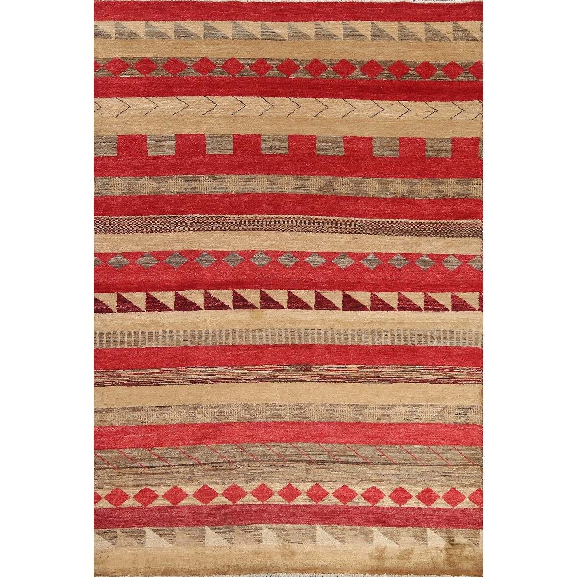 Geometric Oriental Gabbeh Kashkoli Area Rug Hand-knotted Wool Carpet - 4'8" x 6'9"