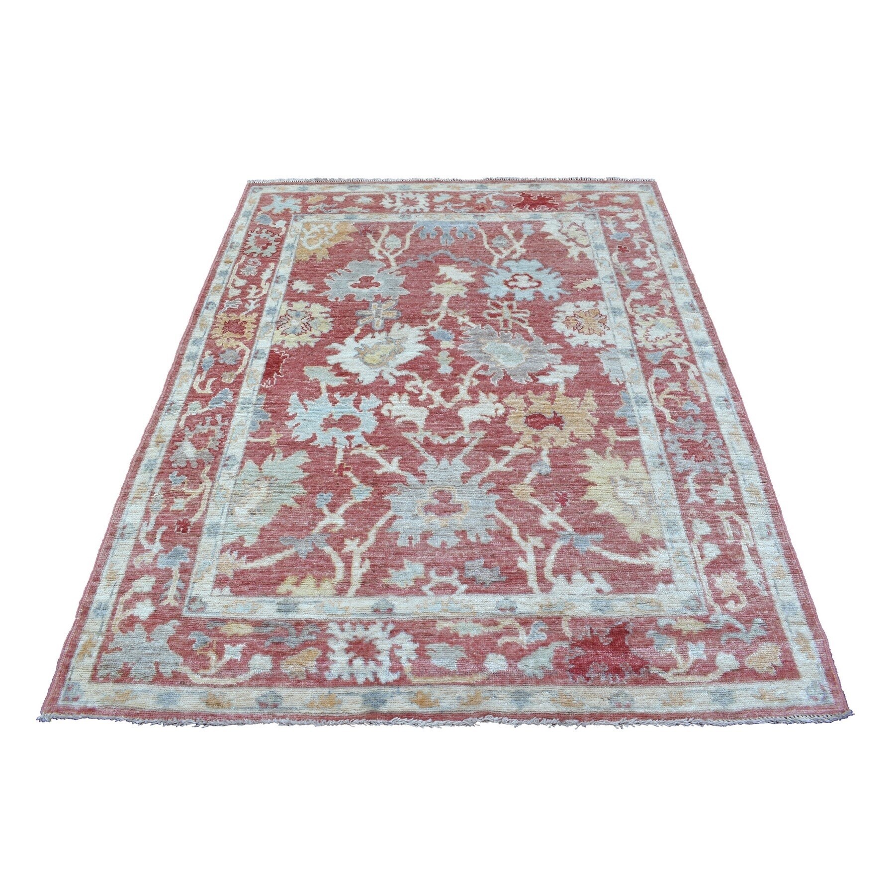 Hand Knotted Red Oushak And Peshawar with Wool Oriental Rug (4'1" x 6'7") - 4'1" x 6'7"