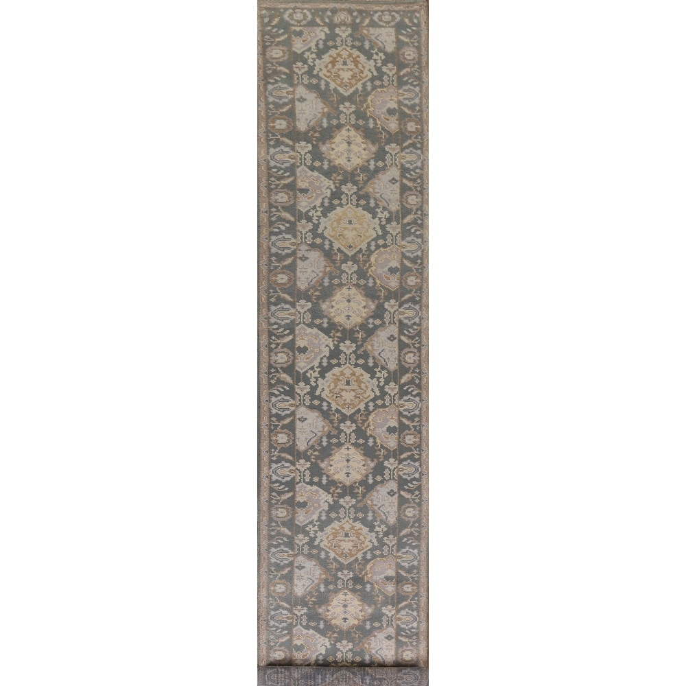 Grey All-Over Oushak Indian Runner Rug Handmade Wool Carpet - 2'6" x 13'8"