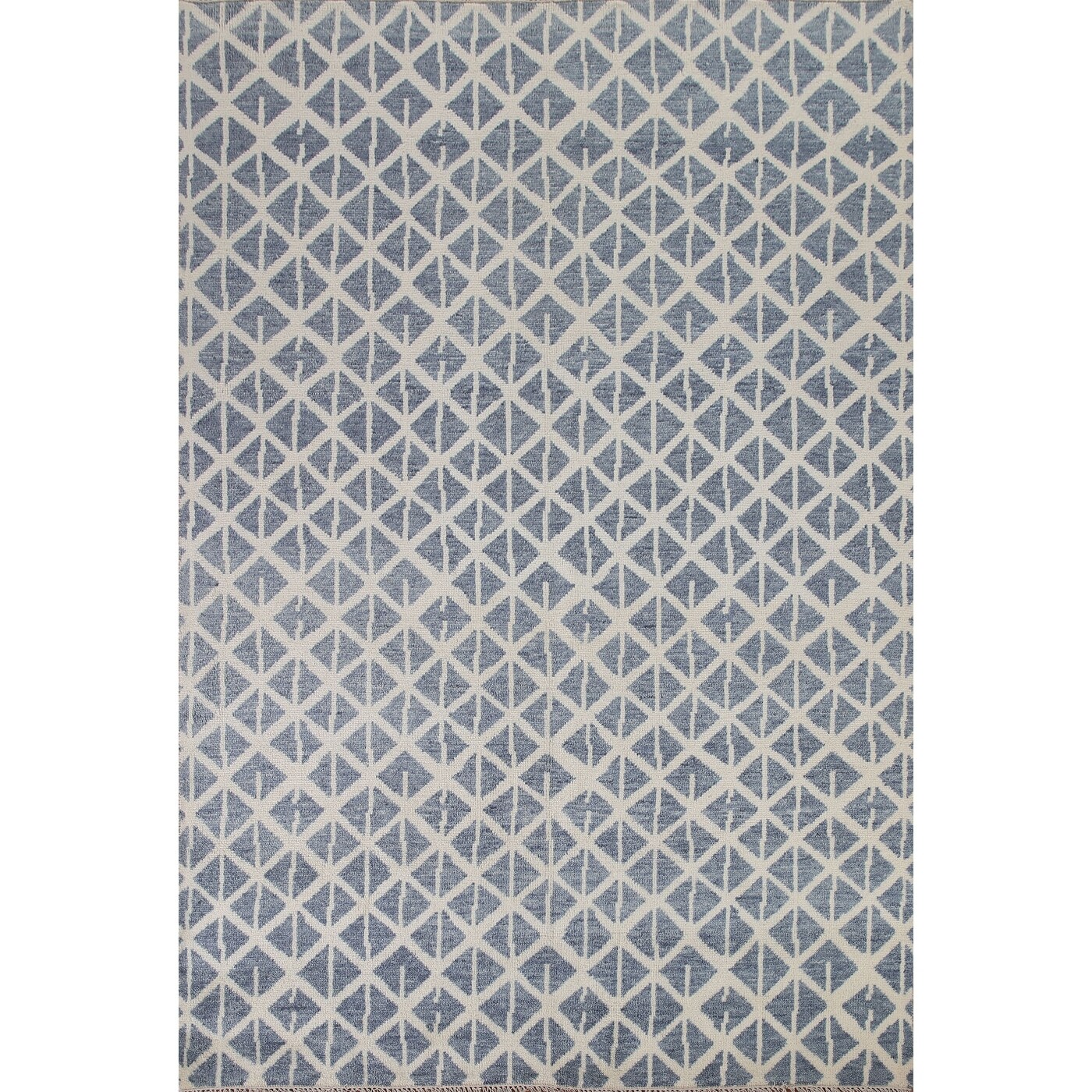 Blue & Ivory Geometric Moroccan Indian Area Rug Handmade Wool Carpet - 7'9" x 9'9"