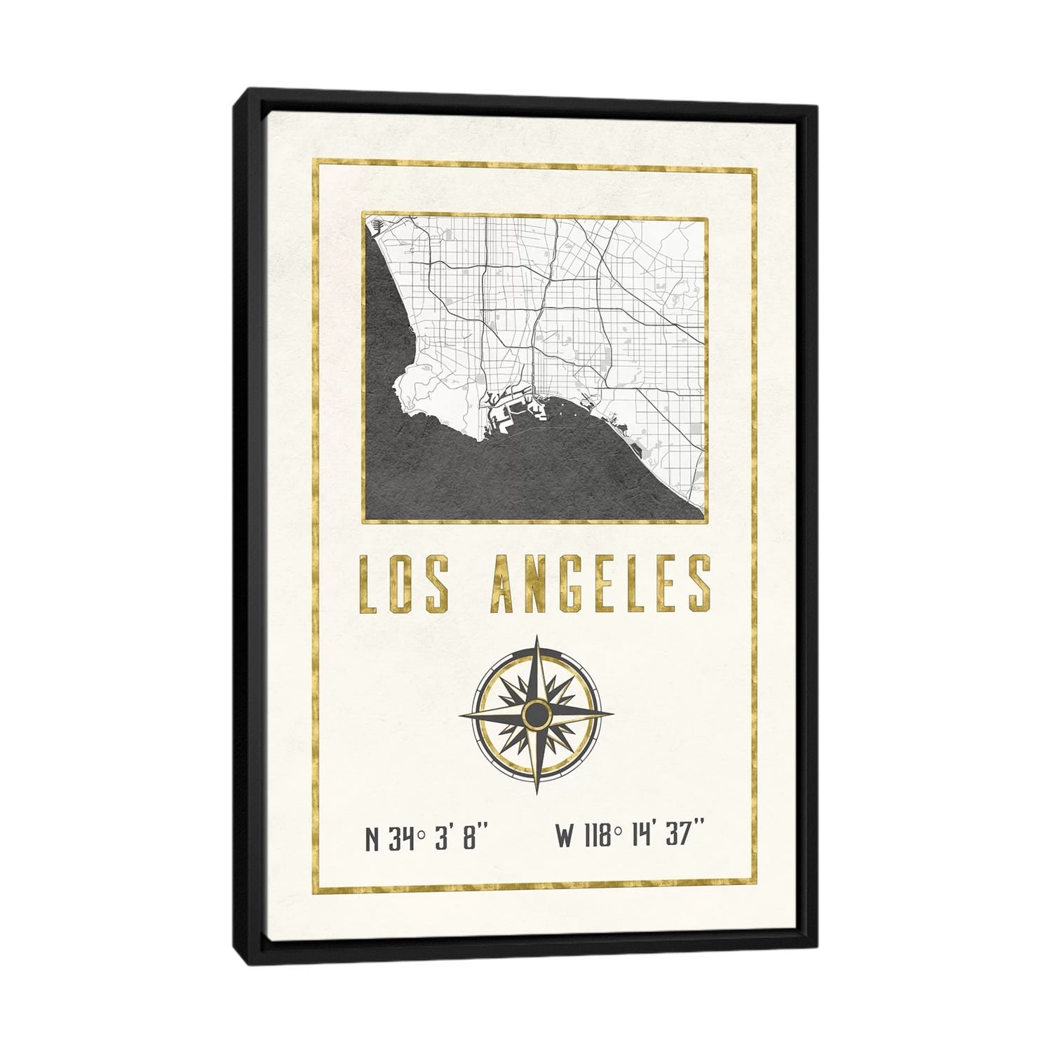 iCanvas "Los Angeles, California Map" by Ayse Deniz Akerman Framed