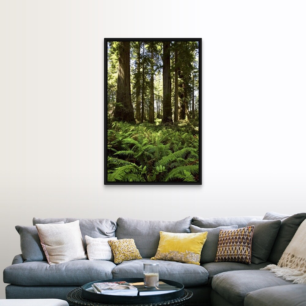 "Trees in a forest, Jedediah Smith Redwoods State Park, California" Black Float Frame Canvas Art