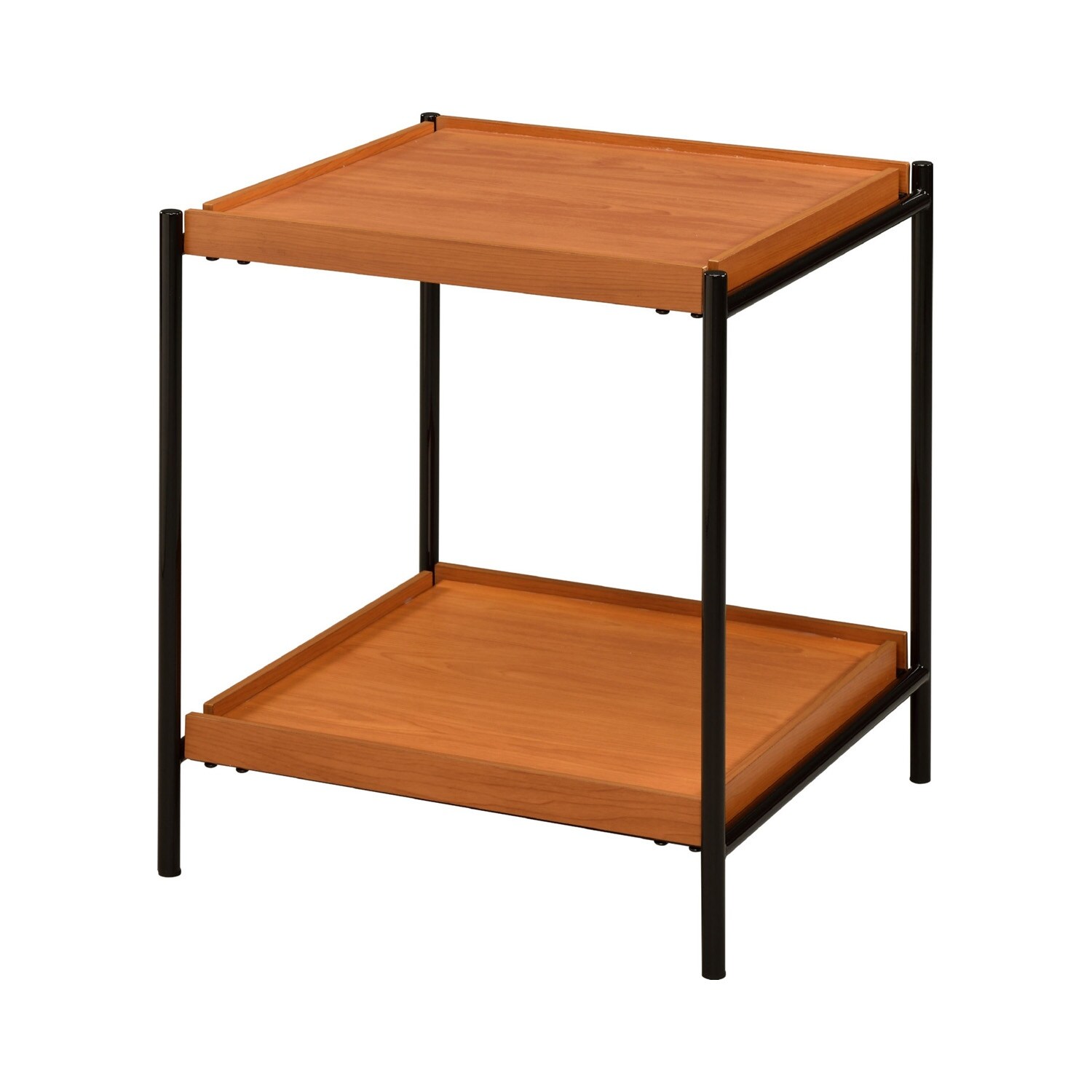 Wooden End Table with Metal Frame in Honey Oak and Black