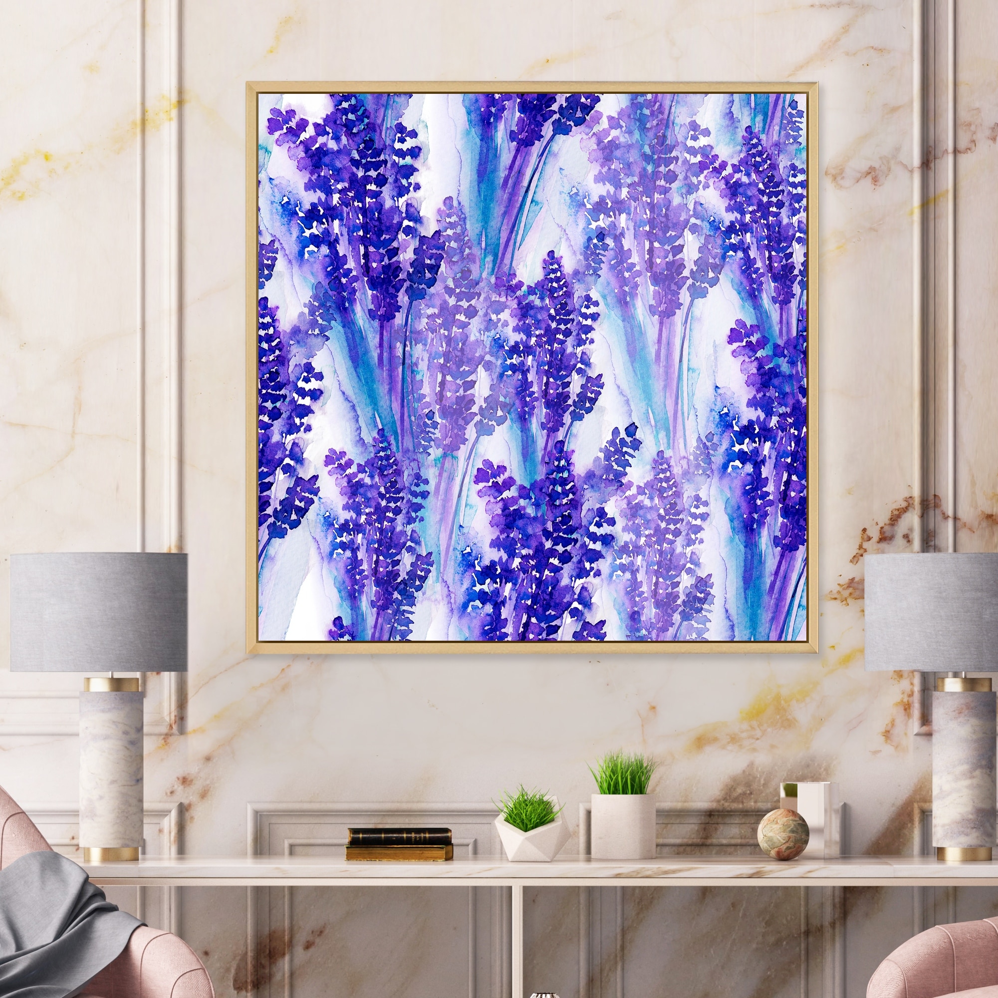Designart "Pattern Herbs And Flowers Painted With Violet" Patterned Framed Canvas Wall Art Print