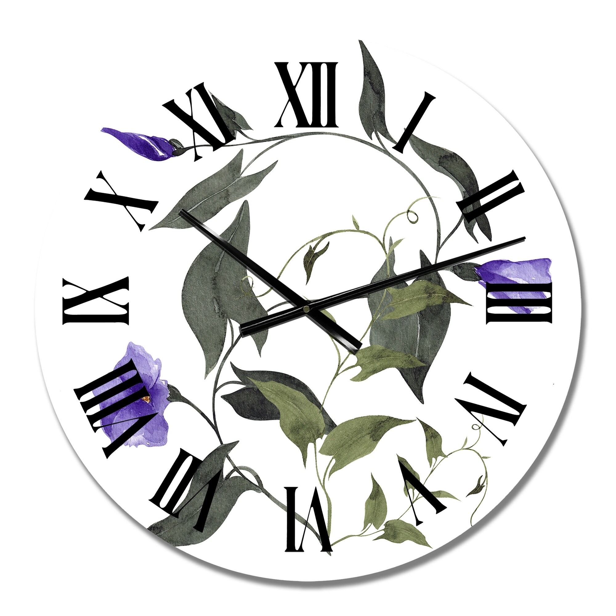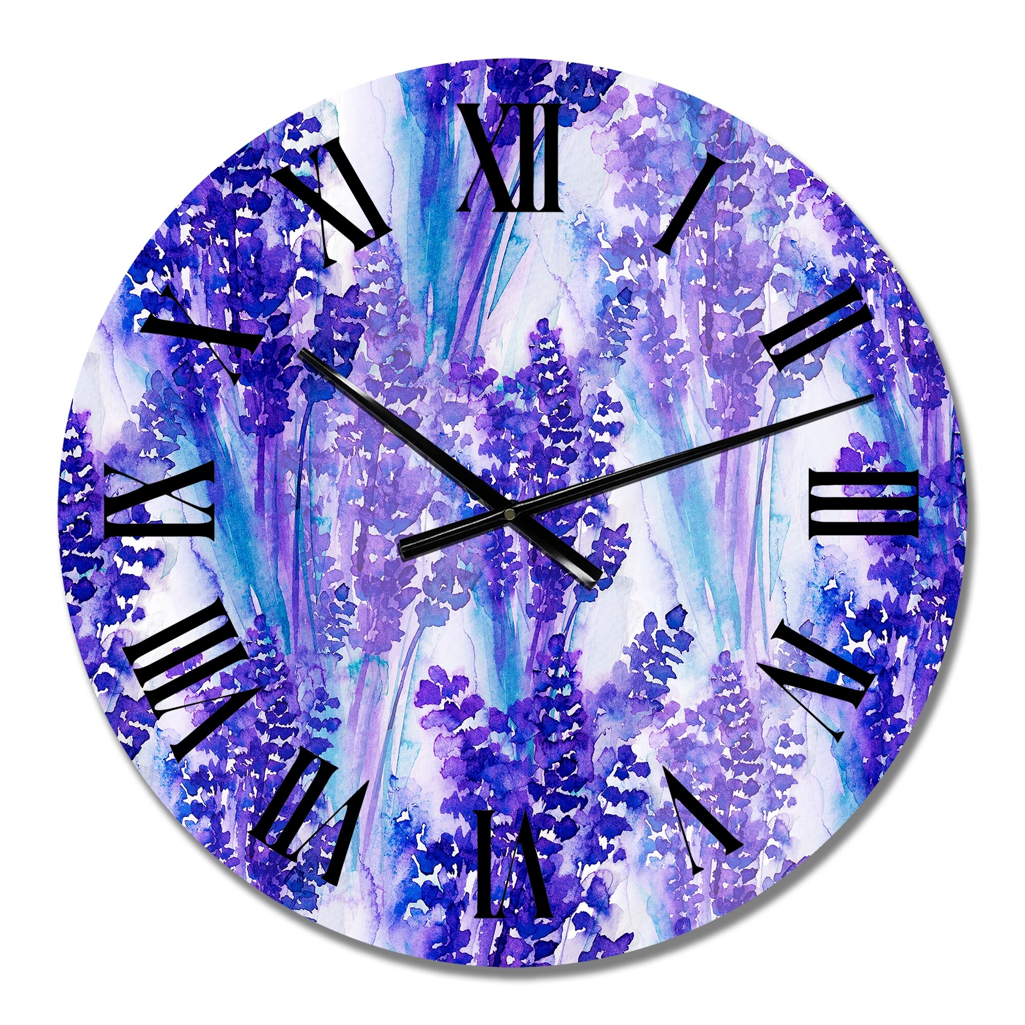 Designart 'Pattern Herbs And Flowers Painted With Violet' Patterned wall clock