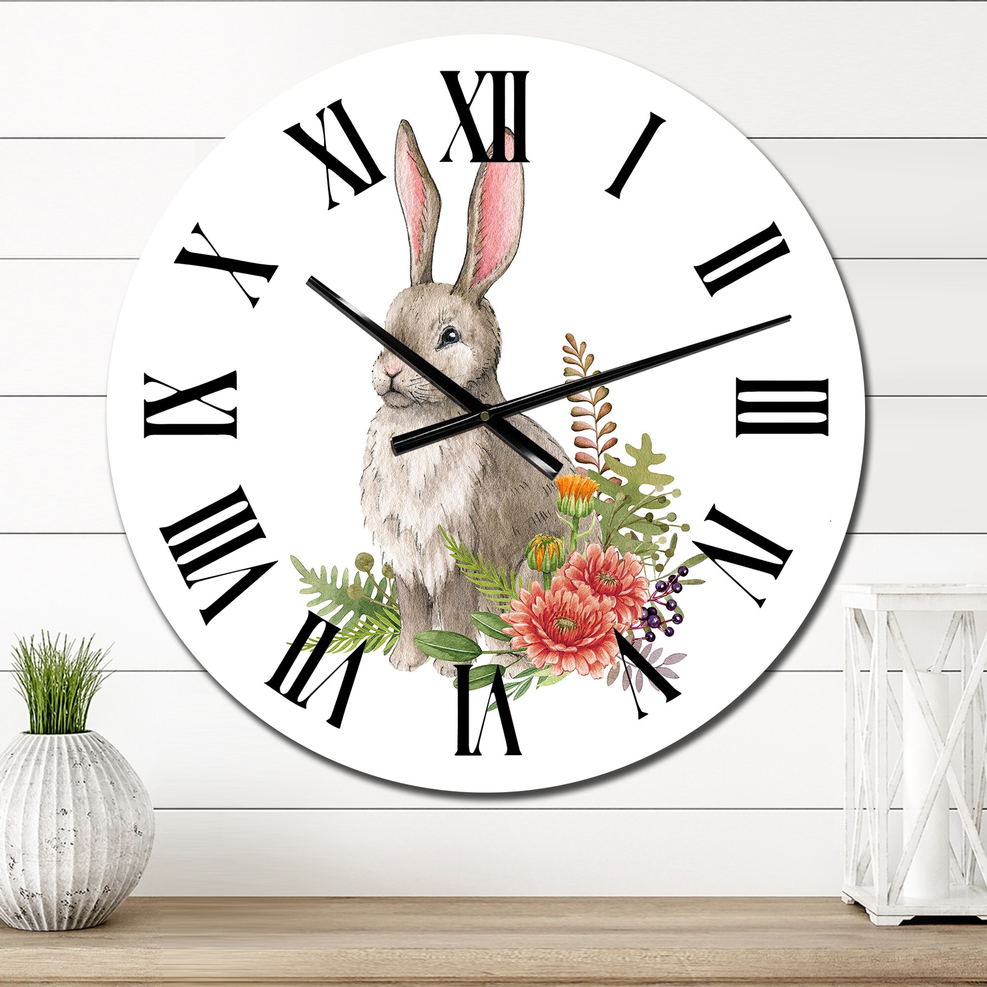 Designart 'Bunny With Flowers And Meadow Herbs' Traditional wall clock