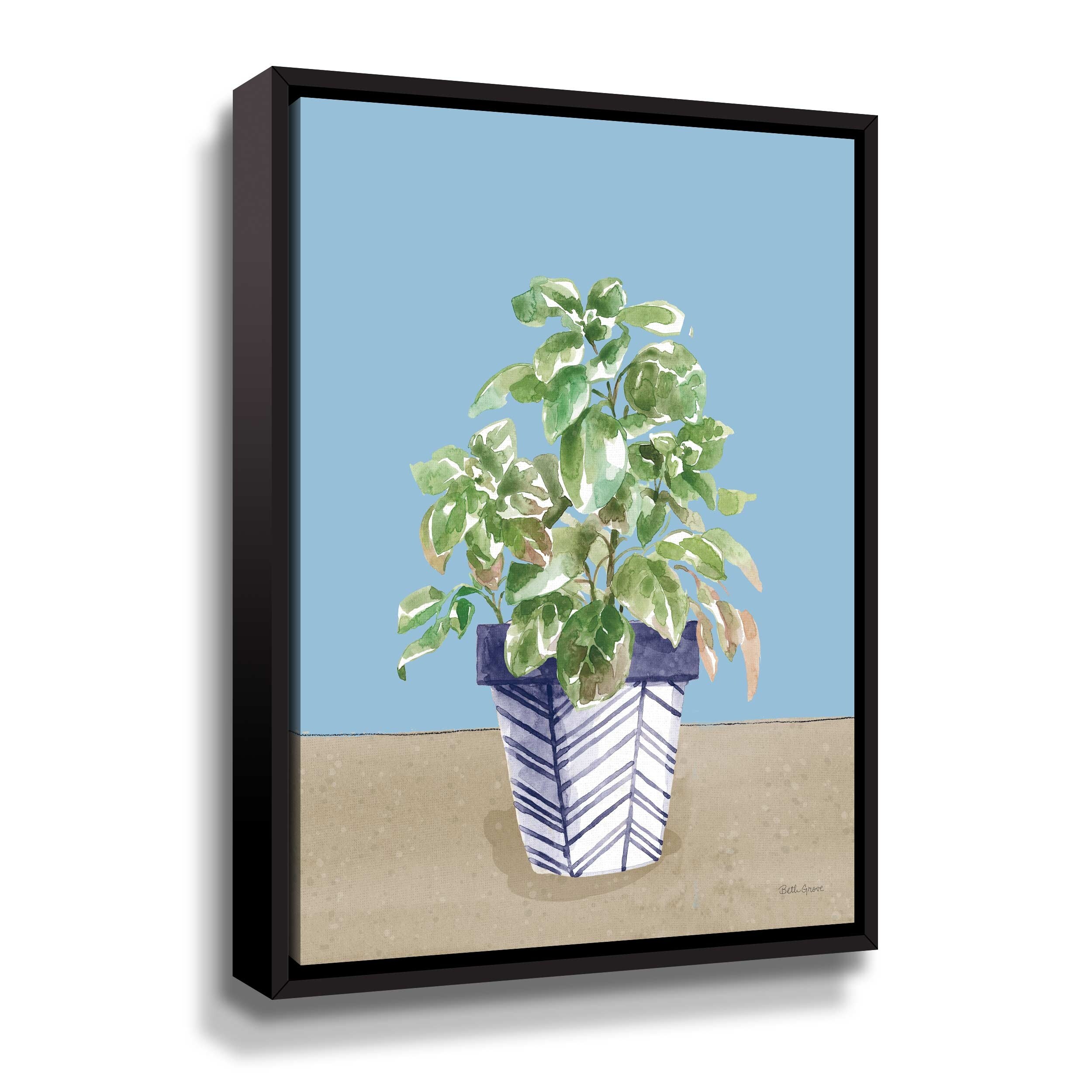 Herb Garden II White Navy Gallery Wrapped Floater-framed Canvas