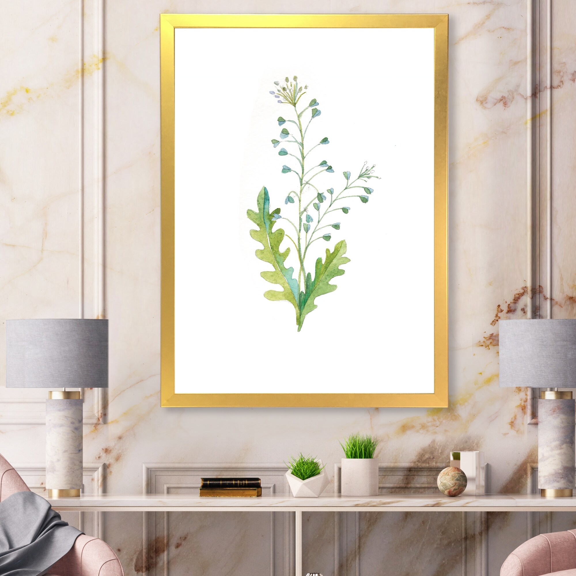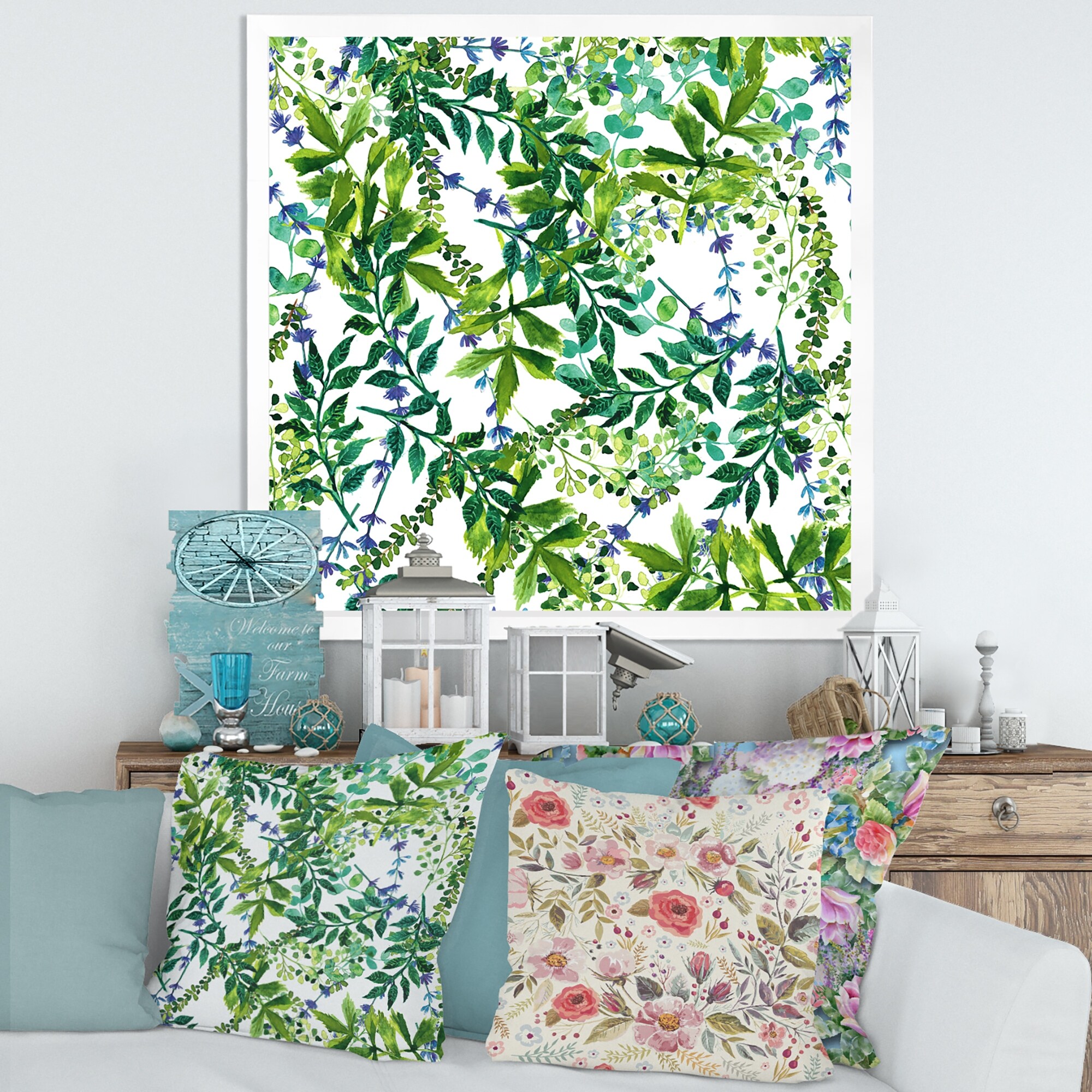 Designart "Green Herbs And Leaves on White" Patterned Framed Art Print