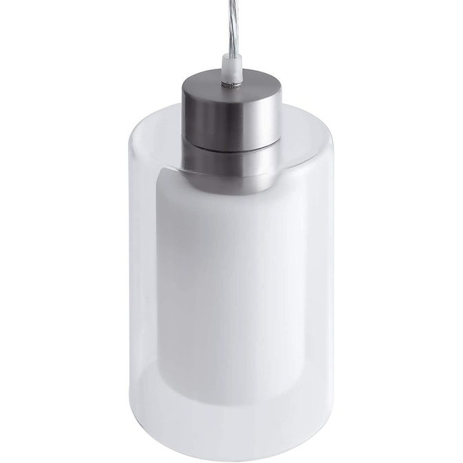 Aspen Creative 2-Light Fabric Lamp Shade Hanging Pendant, White - SATIN NICKEL