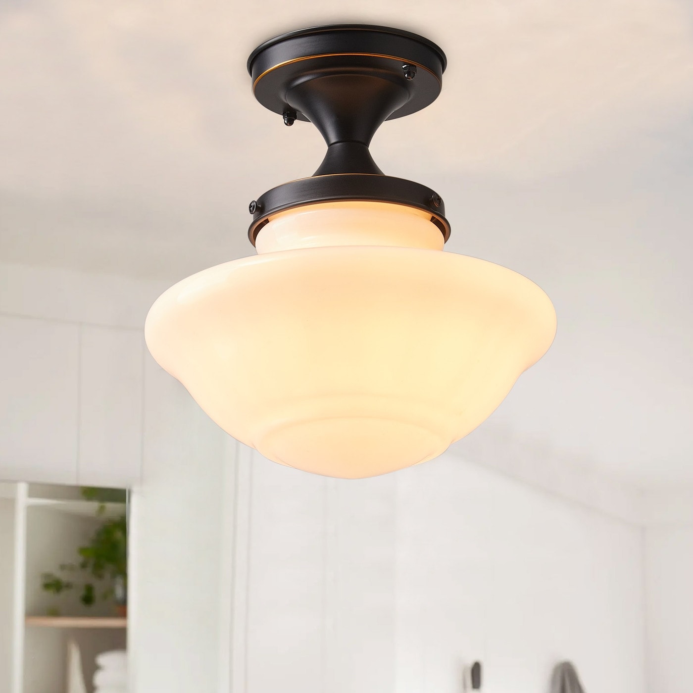 1-Light Black Finish Opal Glass Semi-Flush Mount Ceiling Lamp