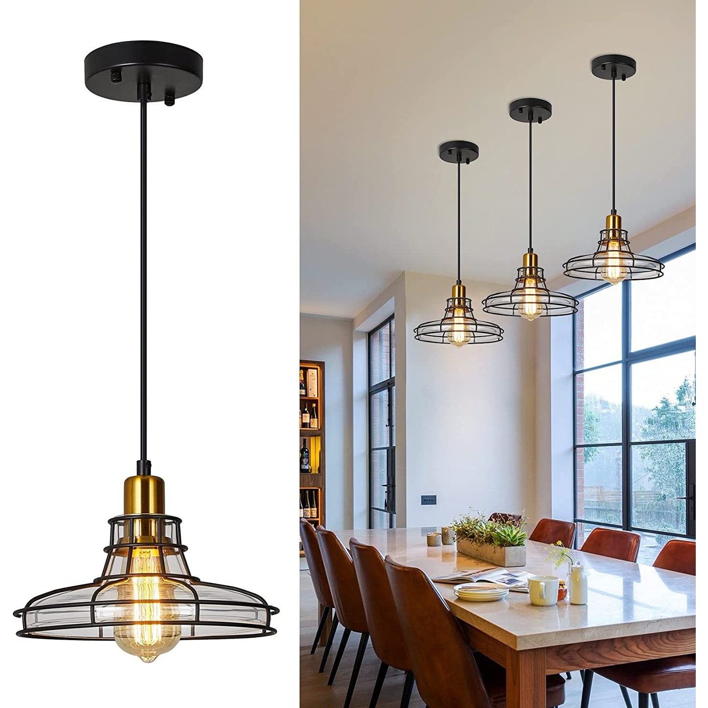 WINGBO Modern Wire Cage Pendant Lamp Black Finish, Vintage Metal Ceiling Hanging Light Fixture - N/A