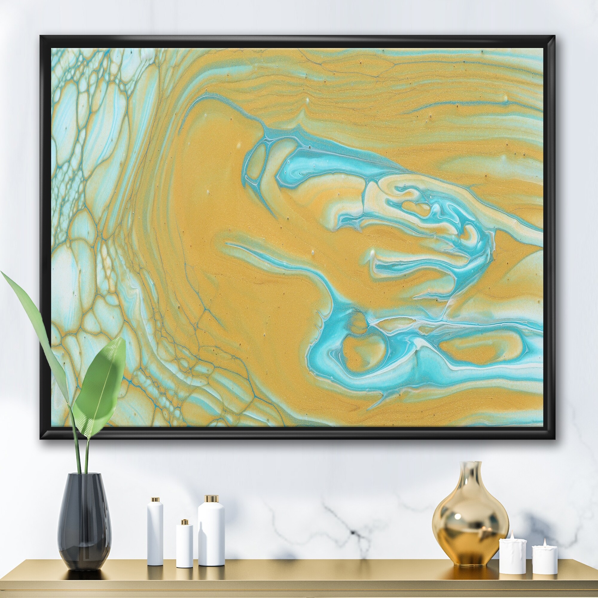 Designart "Marble Landscape With Dark Beige And Blue II" Modern Framed Canvas Wall Art Print