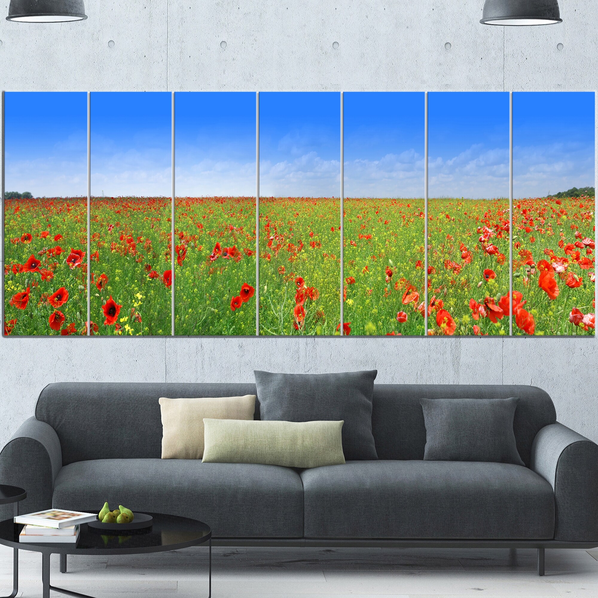 Designart "Poppy Meadow Panorama" Landscape Canvas Art Print