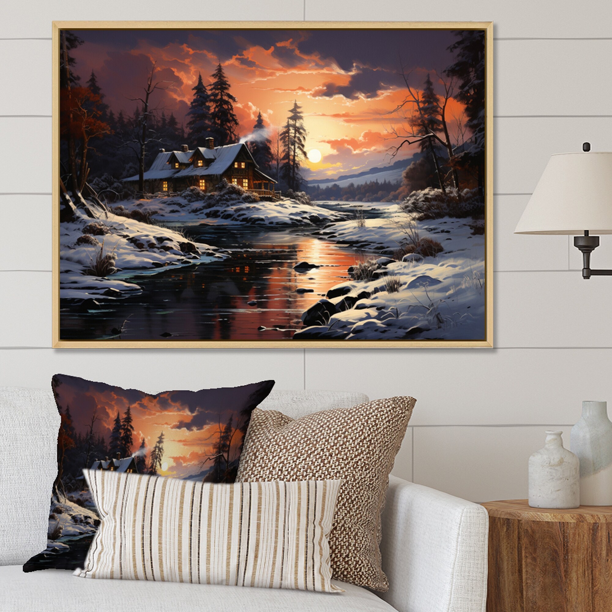 Designart "Winter Glow II" Winter Landscape Framed Canvas Prints