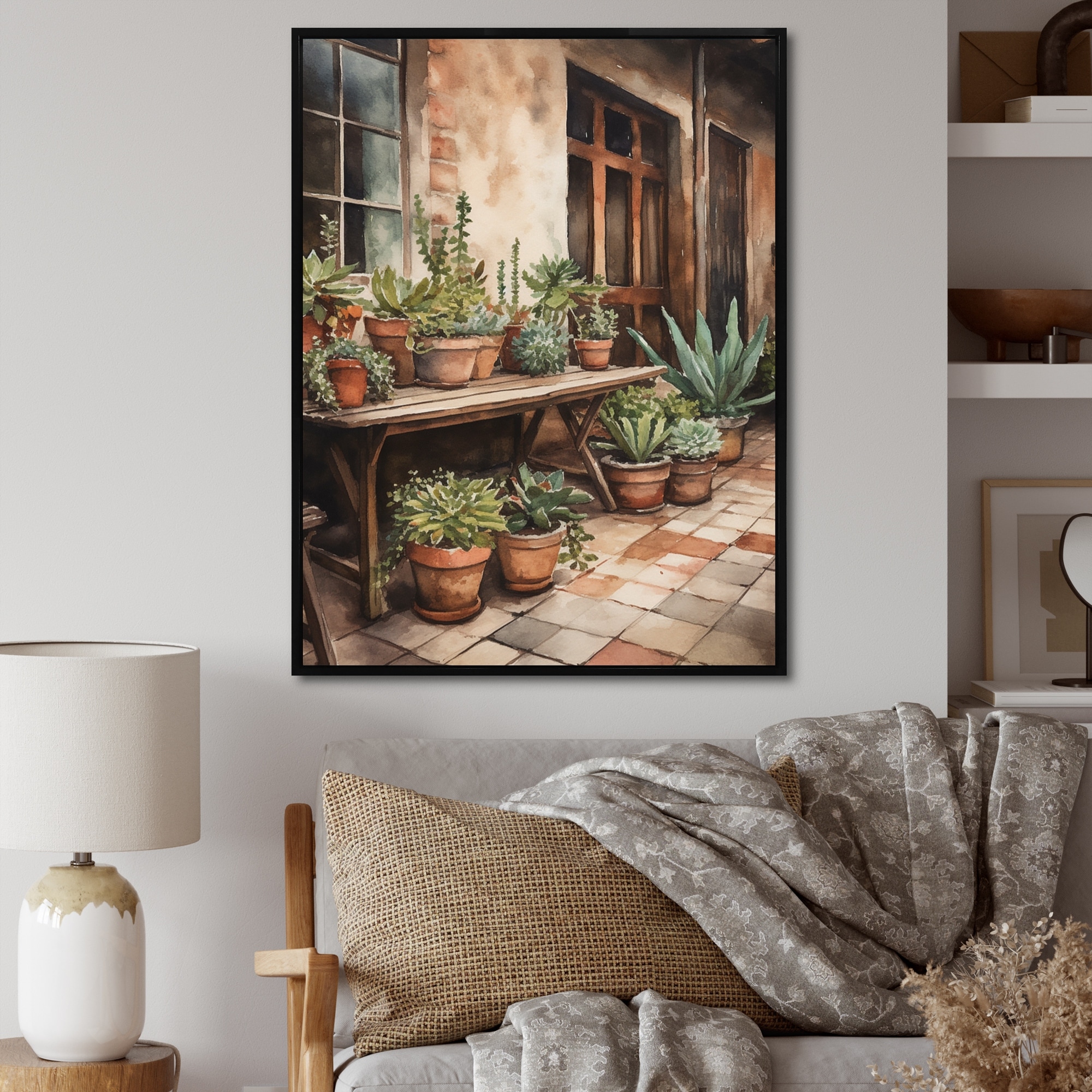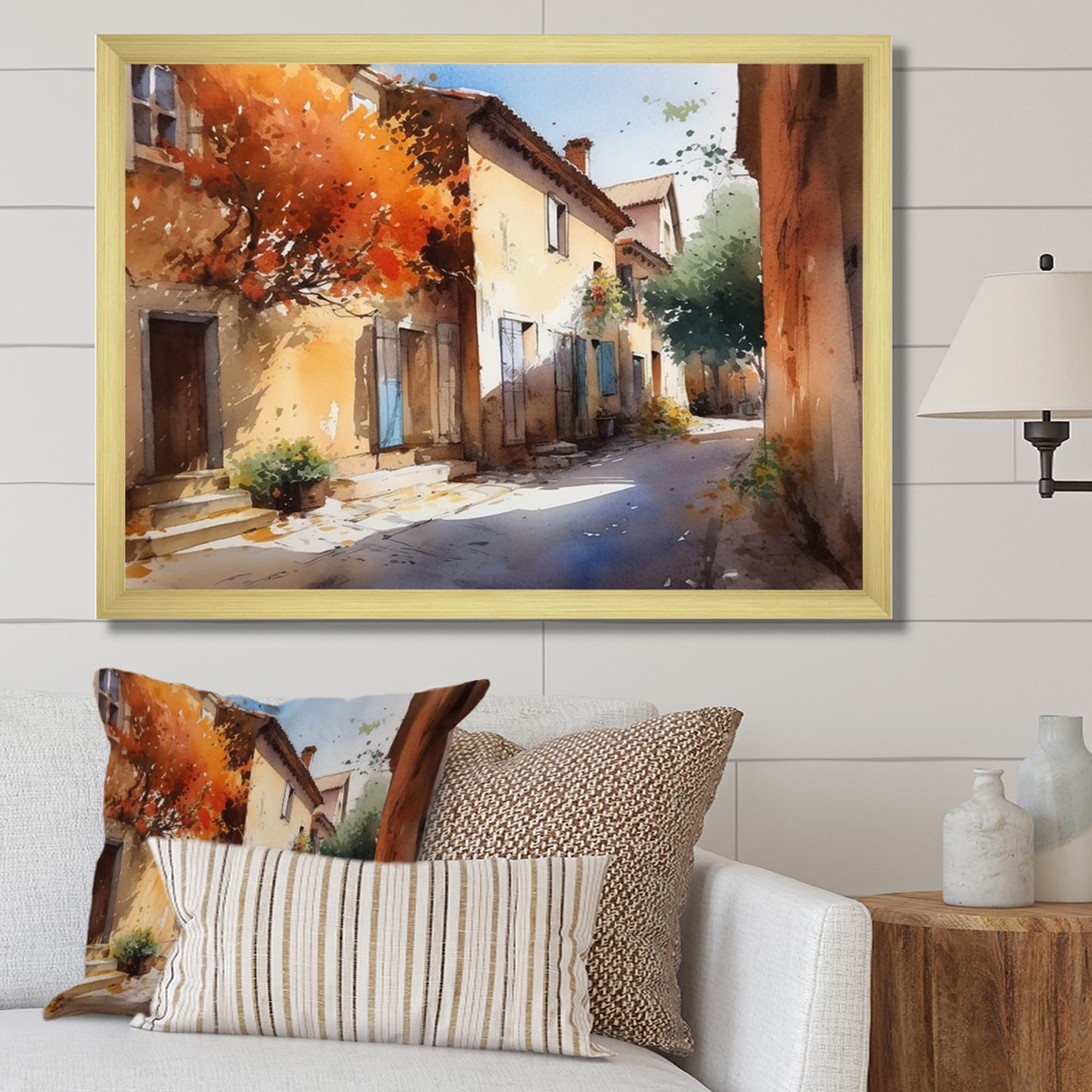 Designart "Mediterranean Village Street Iii" Cottage Landscape Framed Canvas Wall Art