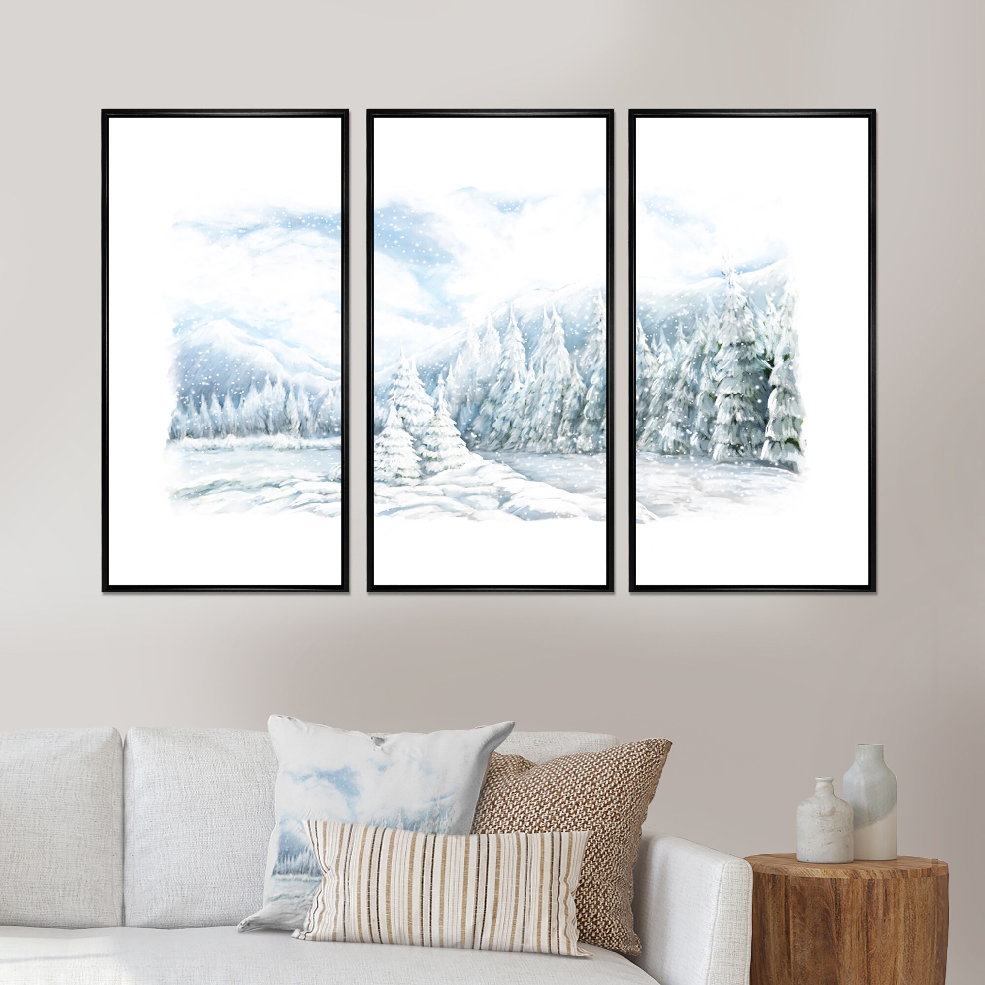 Designart "Christmas Winter Happy Panorama" Landscape Framed Art Prints Set of 3 - 4 Colors of Frames