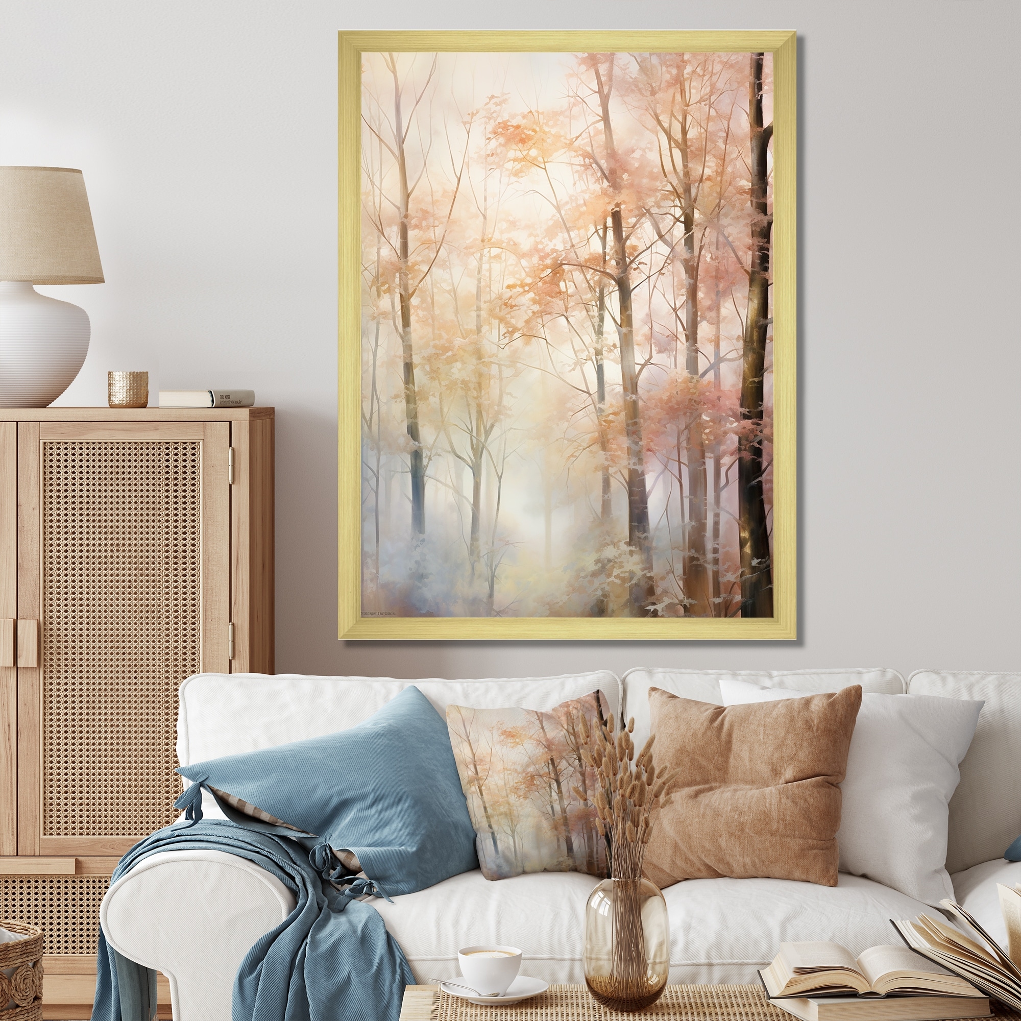 Designart "Coral Trees Romantic Impression" Landscape Trees Framed Wall Decor