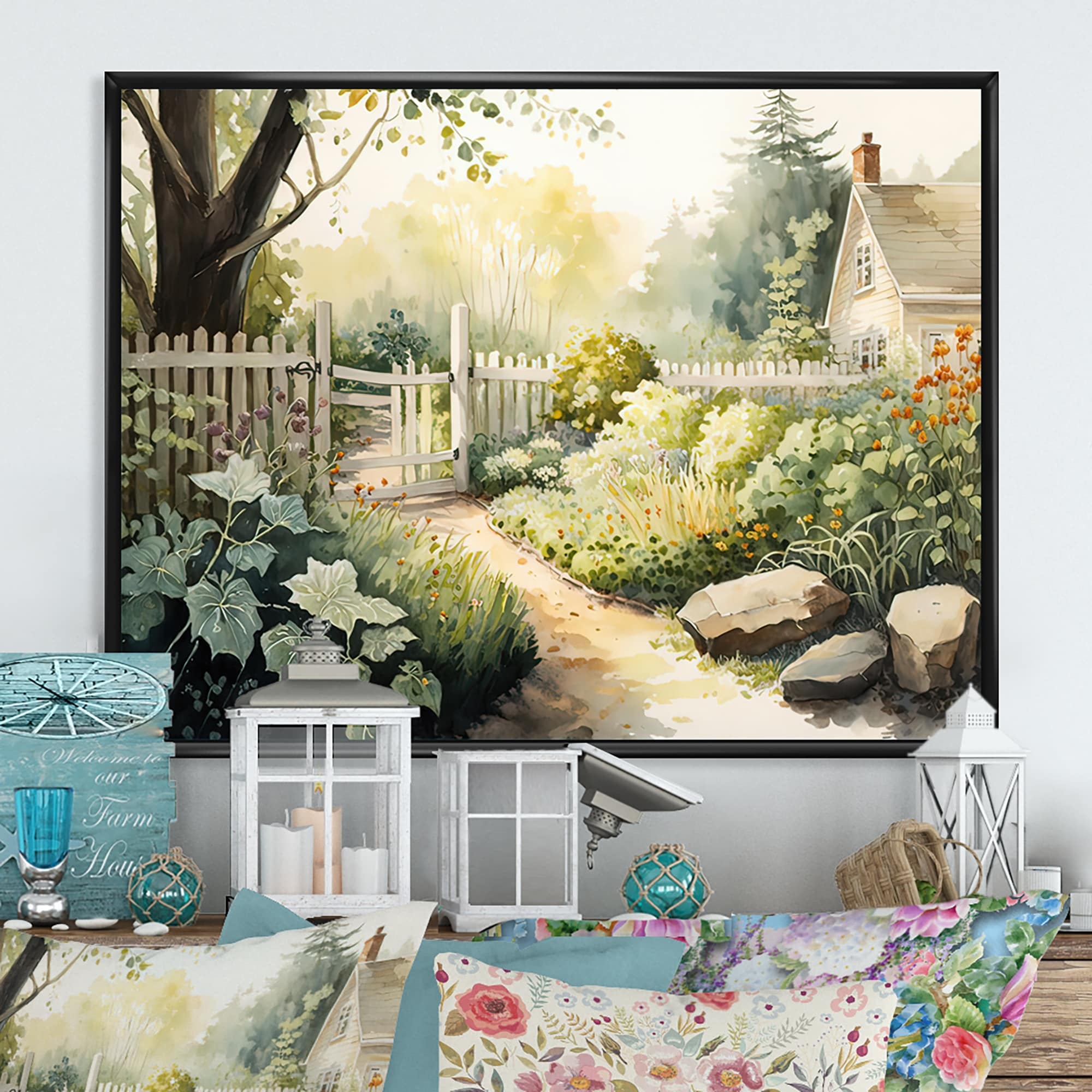 Designart "Cottage Terrasse Garden I" Cottage Landscape Framed Canvas Art Print