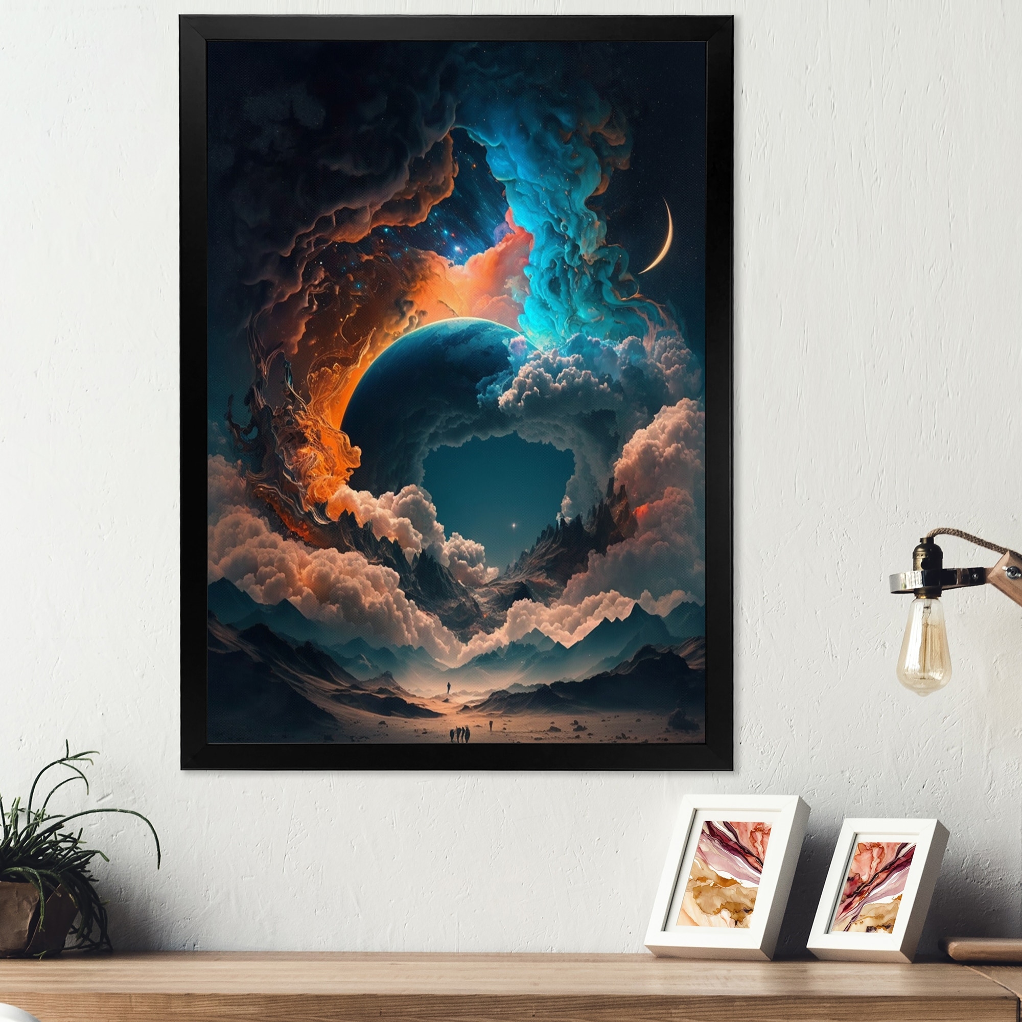 Designart "Futuristic Landscape in Space II" Outer Space Framed Art Print