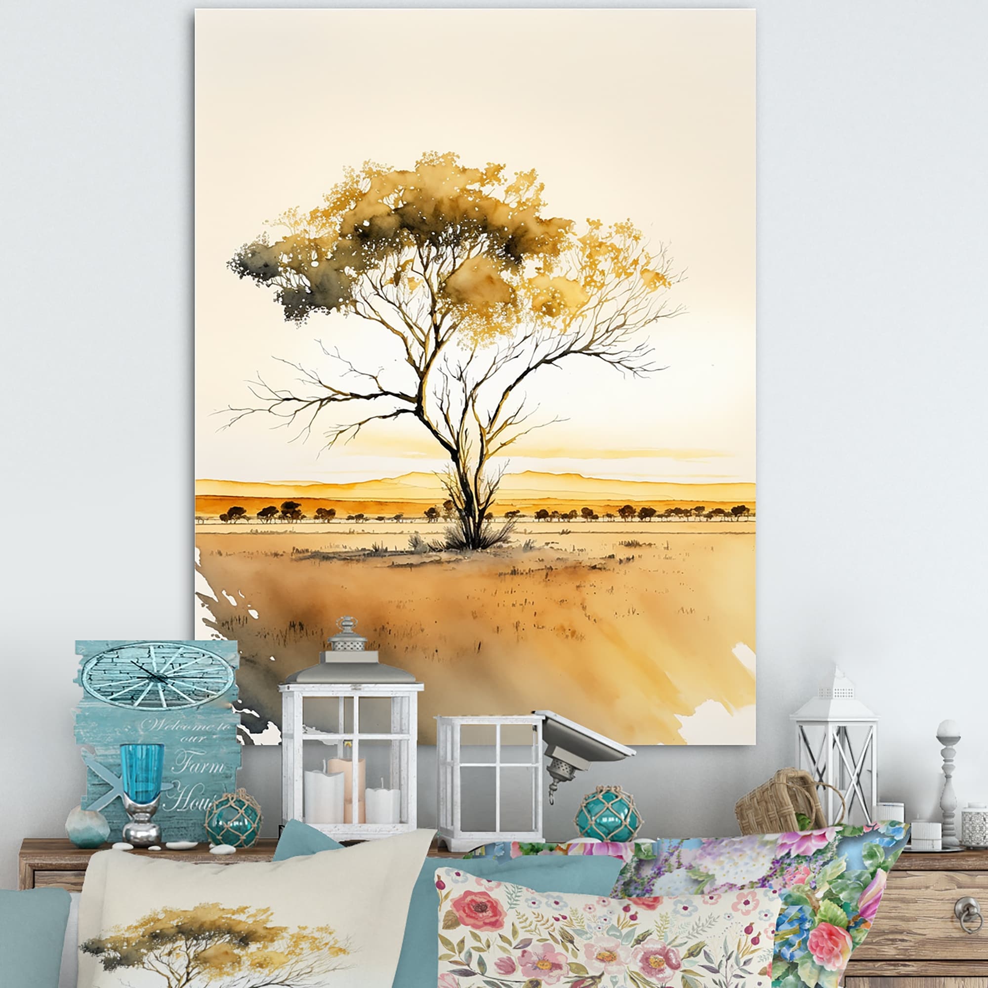 Designart "Tree In the Countryside At Sunset III" Landscape Forest Canvas Wall Art