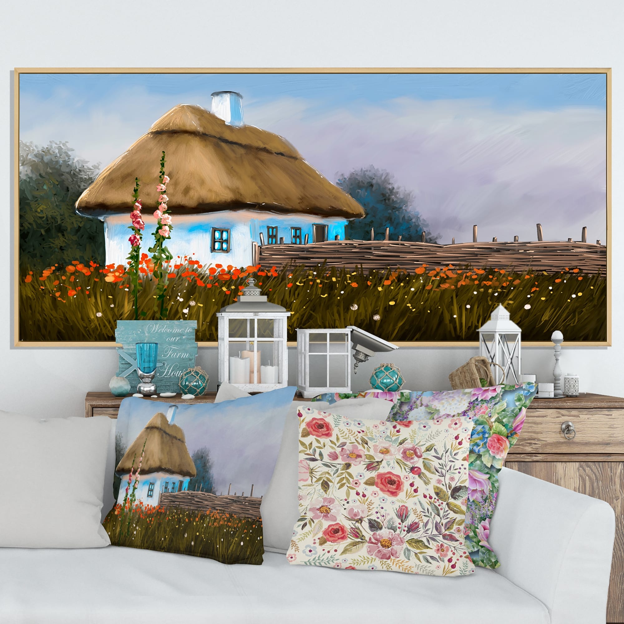 Designart "View From A Cottage Country Door Iii" Farm Landscape Framed Wall Decor