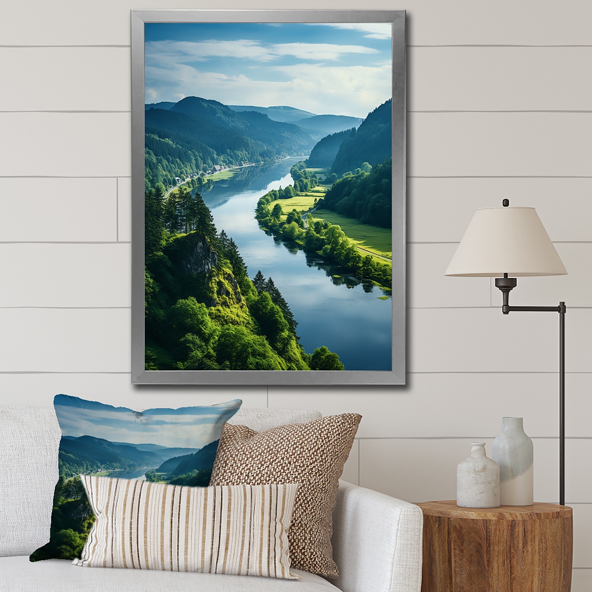 Designart "Beautiful Summer River Green Landscape III" Country Framed Art Print