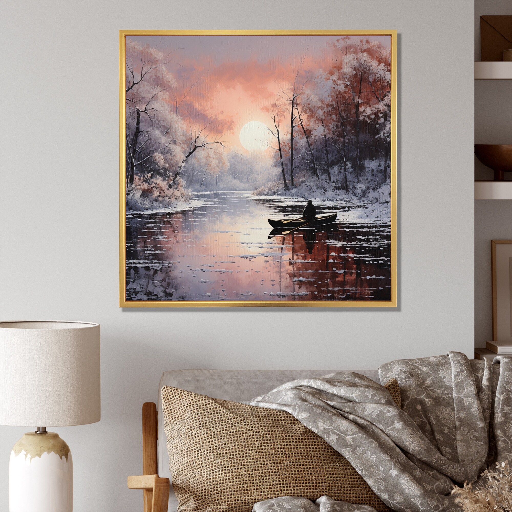 Designart "Winter River Landscape Illustration II" Traditional Framed artwork