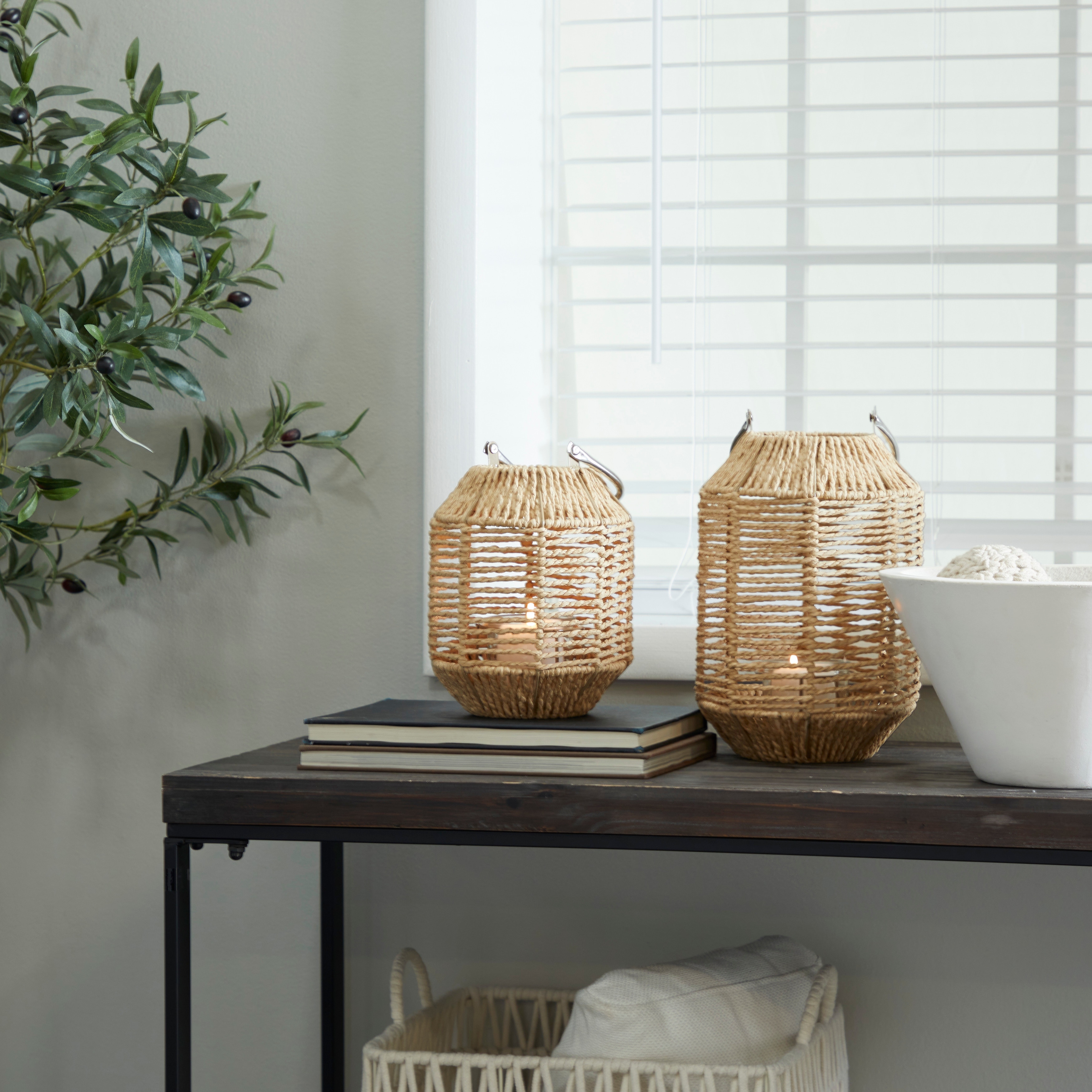 Artistic Weavers Shira Glass & Jute Decorative Lantern - 9"H x 8"W x 8"D