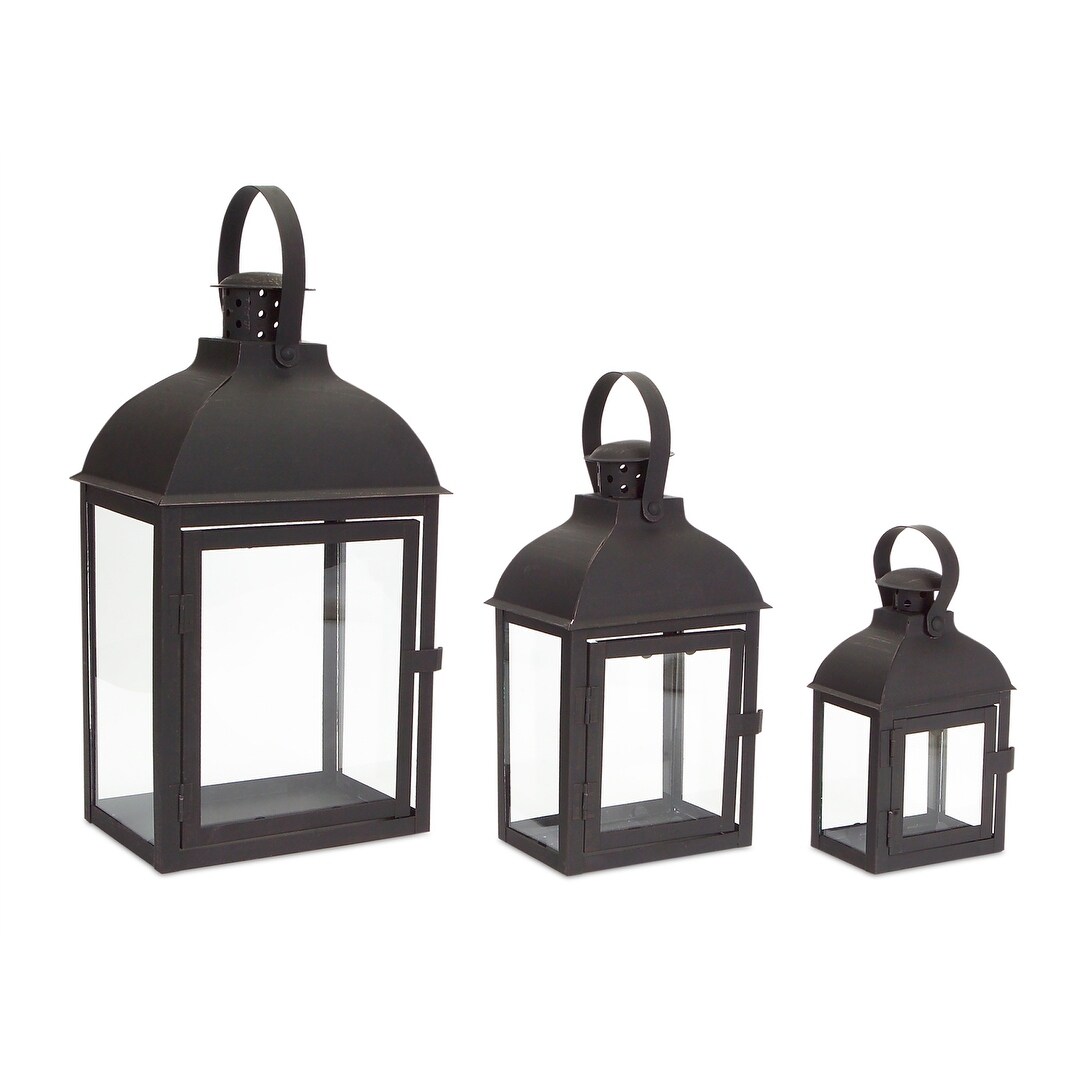 Iron Metal Lantern (Set of 3) - 8 x 5.75 x 14; 6.13 x 4.25 x 10.5; 4.25 x 3 x 7.25