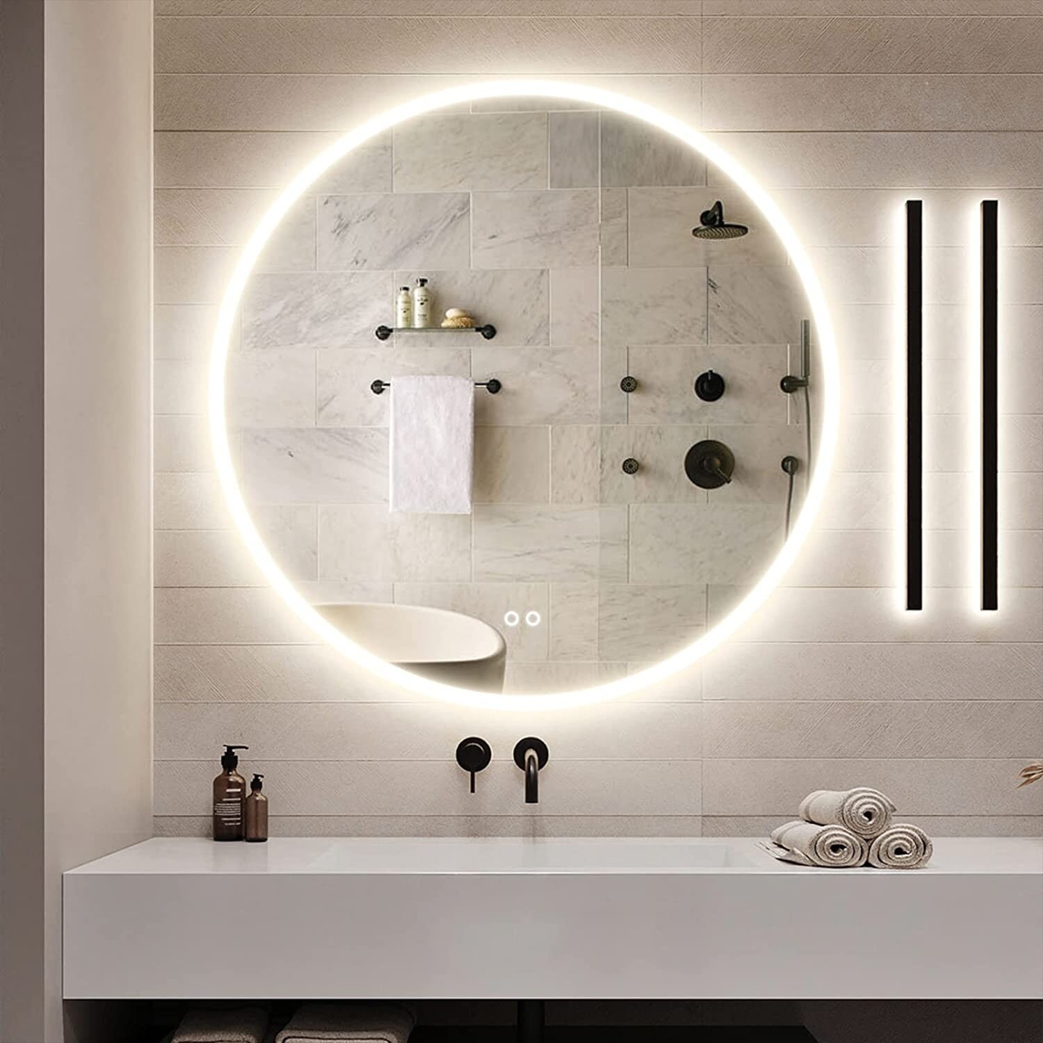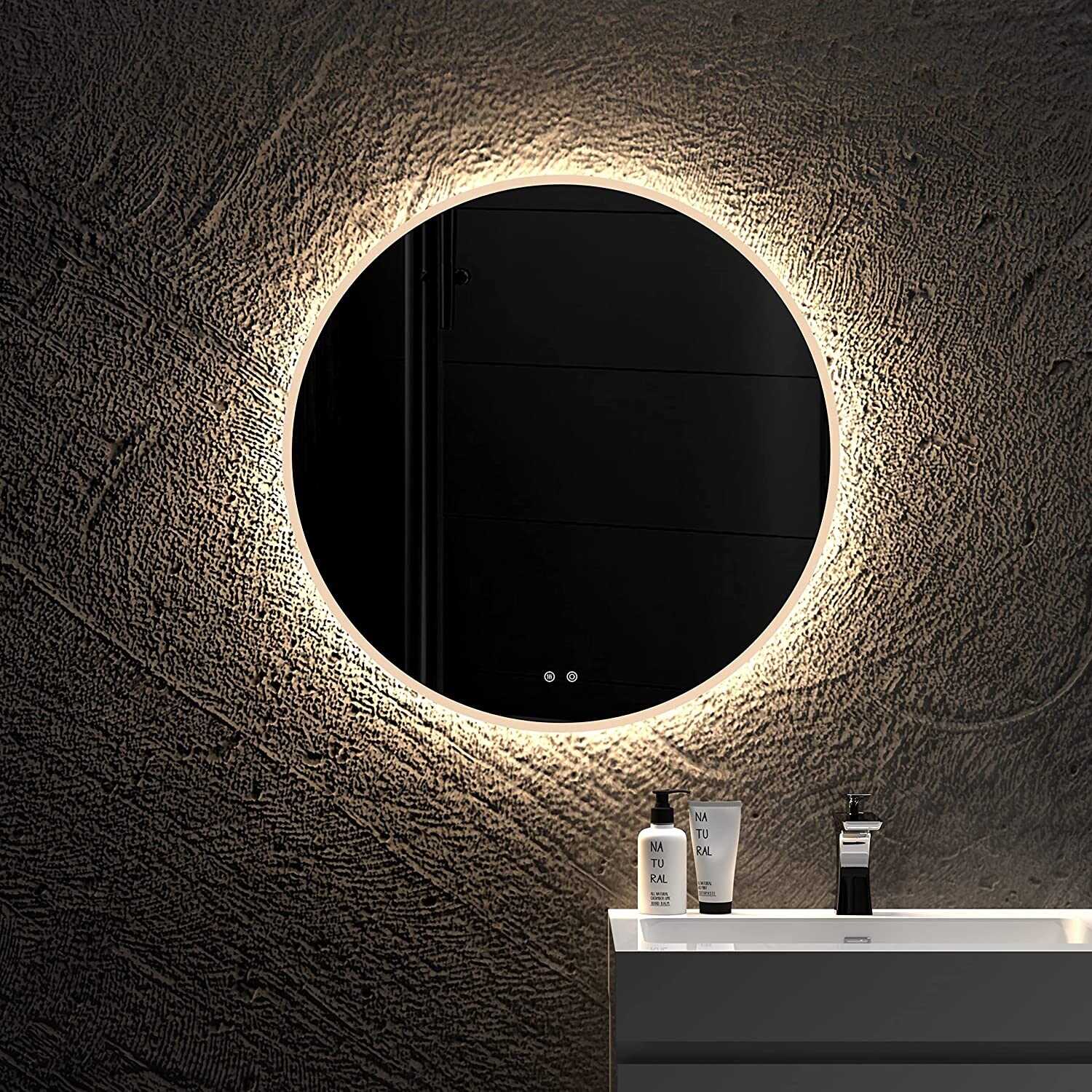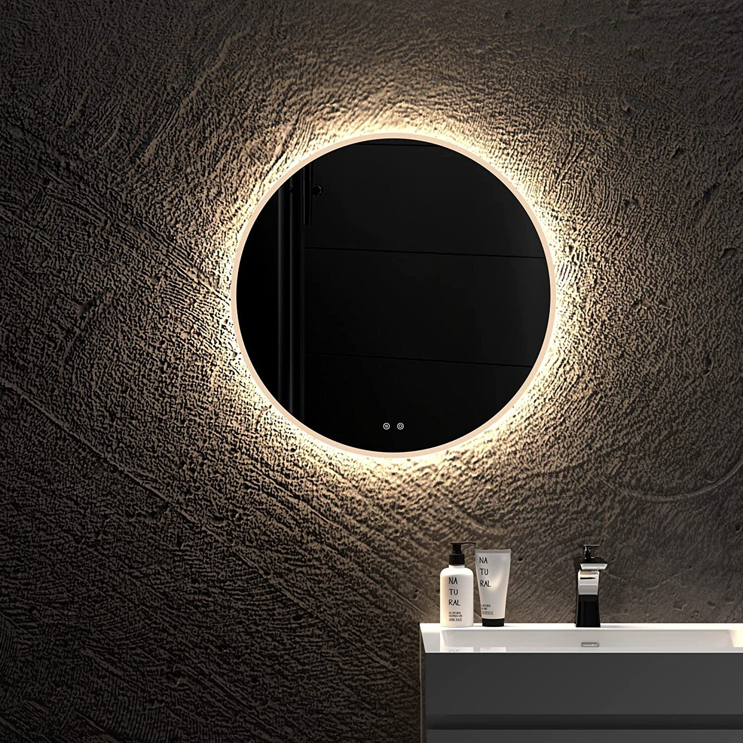 Round Wall Mirror with LED Lights, 50cm/60cm/70cm/80cm Illuminated Bathroom Mirror, 3-Color Infinitely Dimmable, IP44