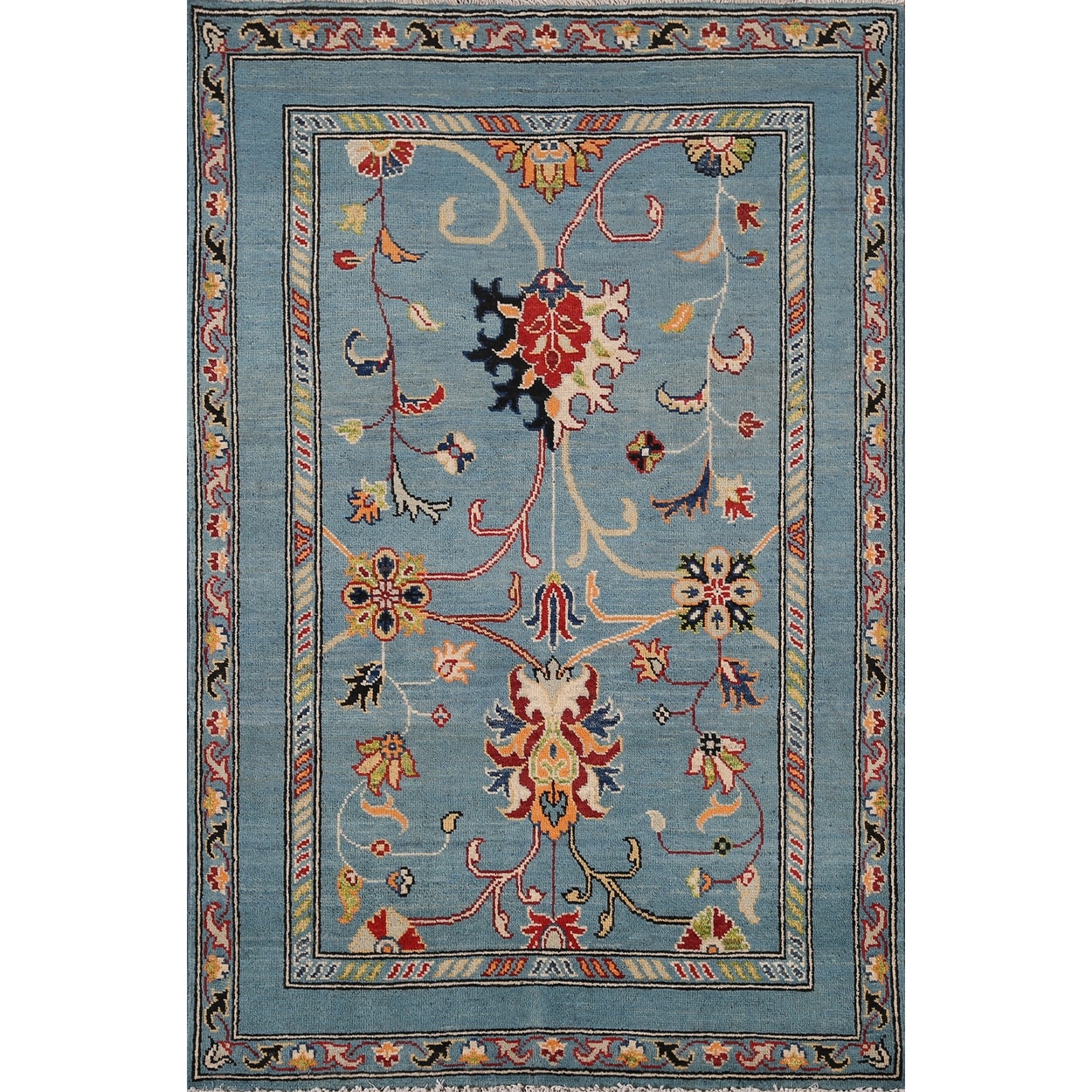 Light Blue Floral Oushak Oriental Accent Rug Handmade Wool Carpet - 3'3" x 5'0"