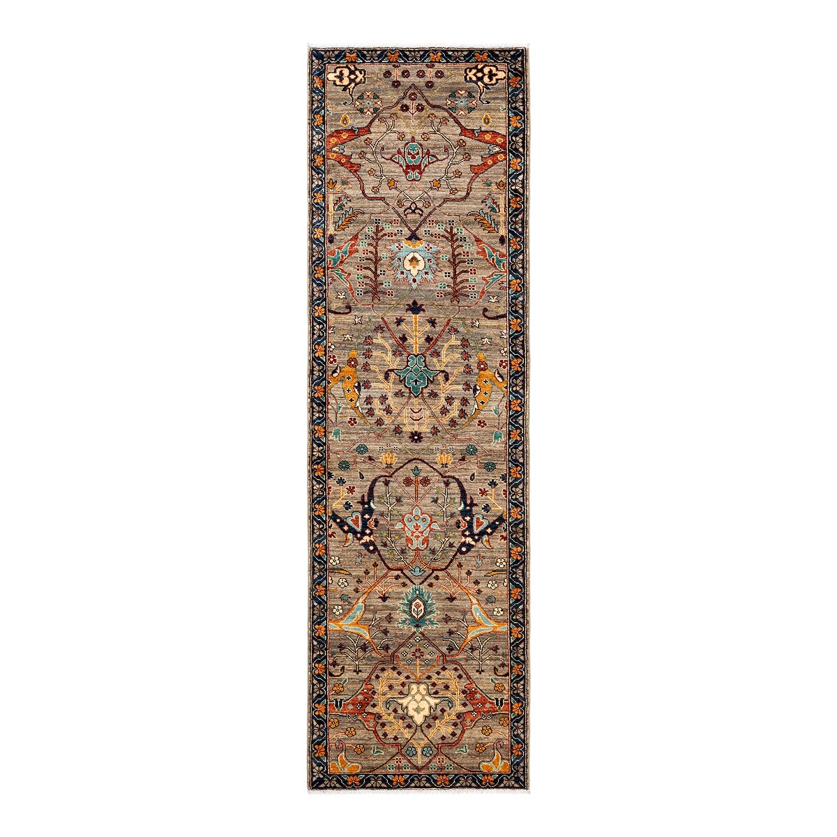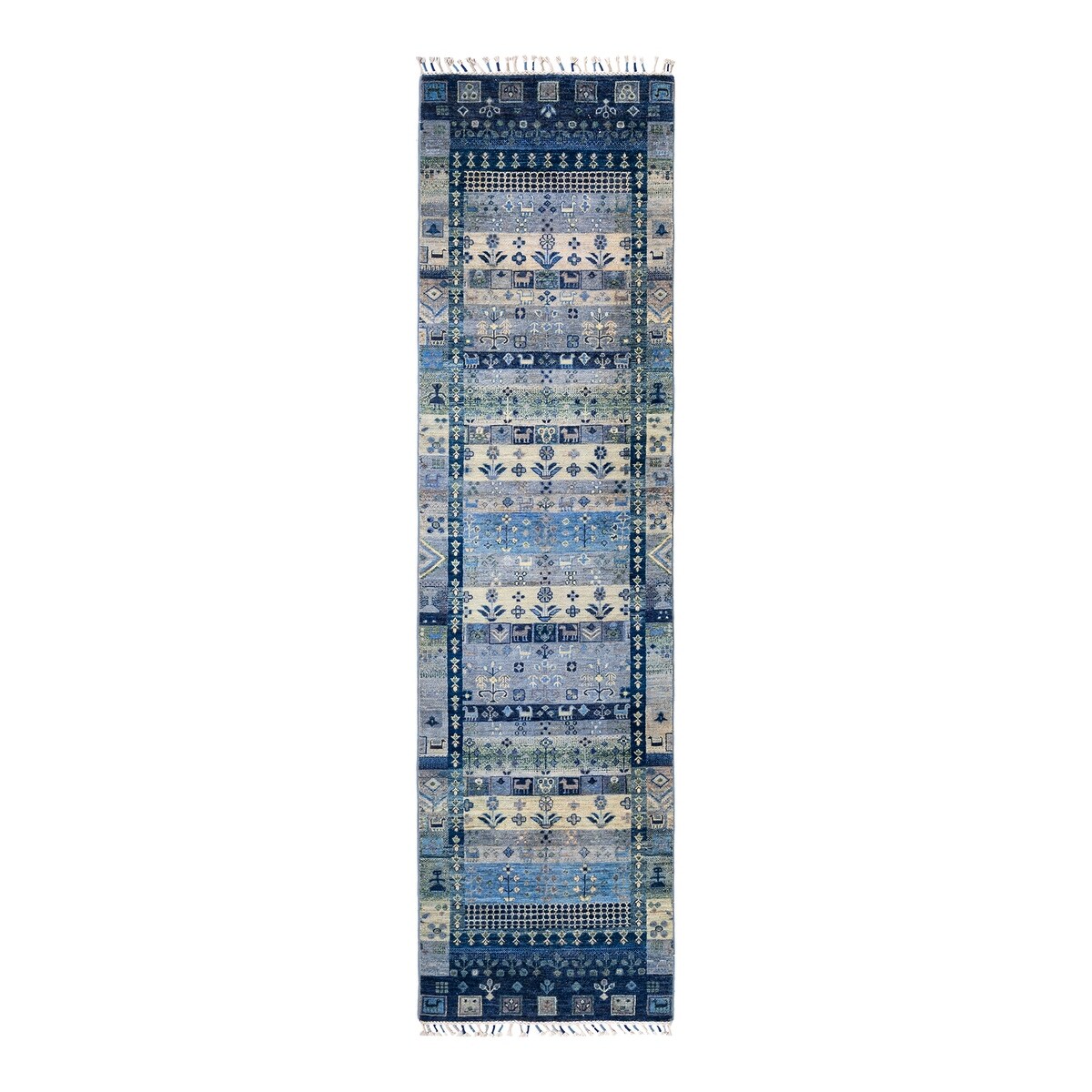 Hand Knotted Bohemian Tribal Wool Light Blue Area Rug - 2' 6" x 9' 11"