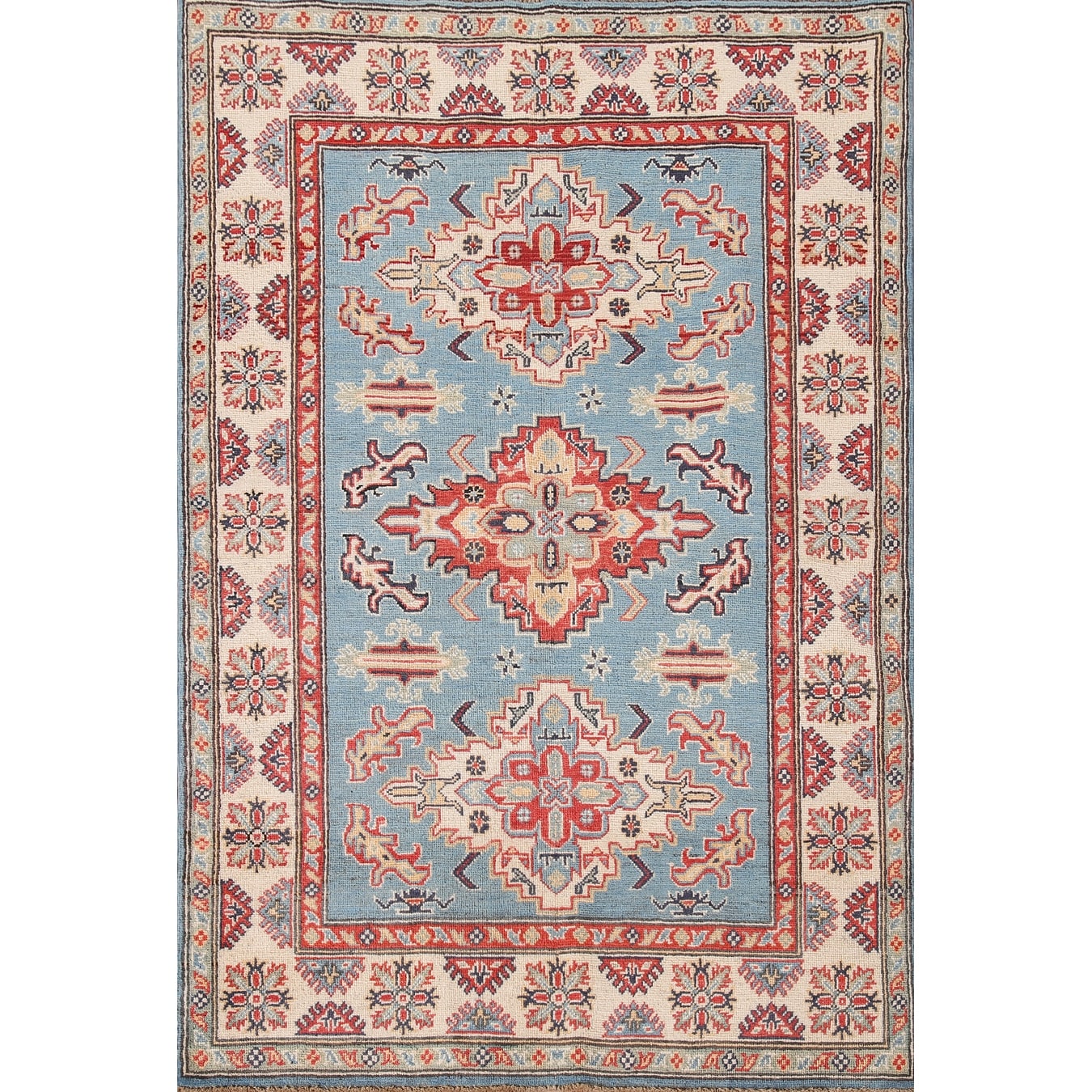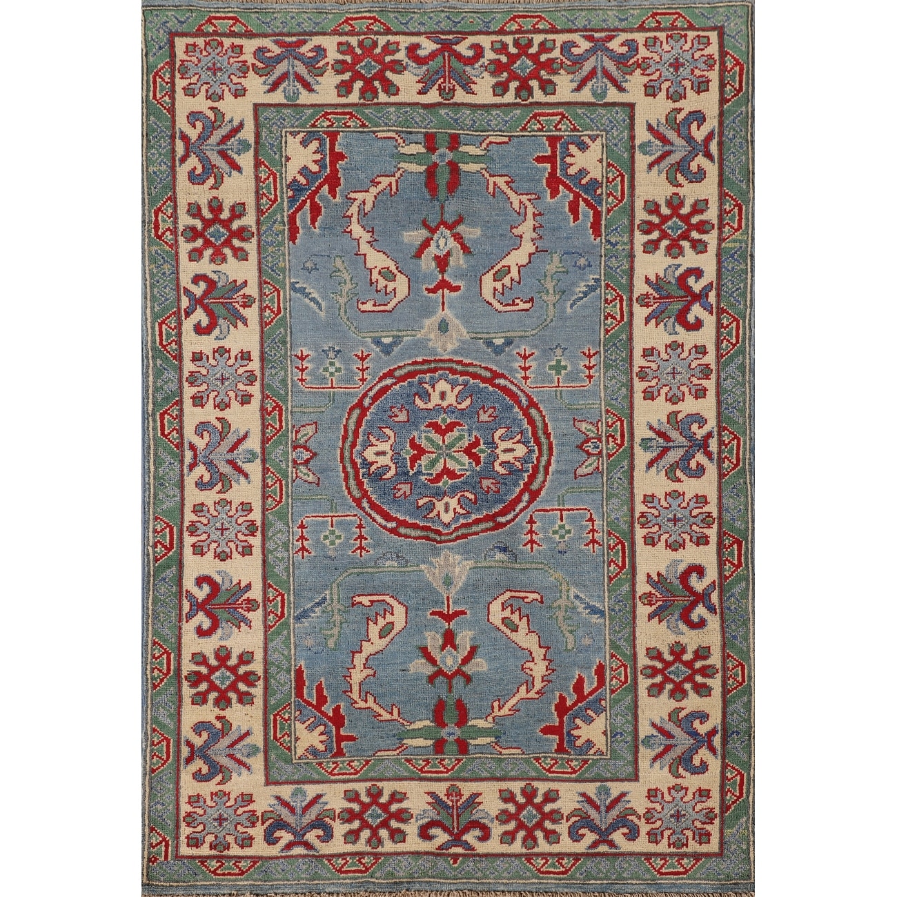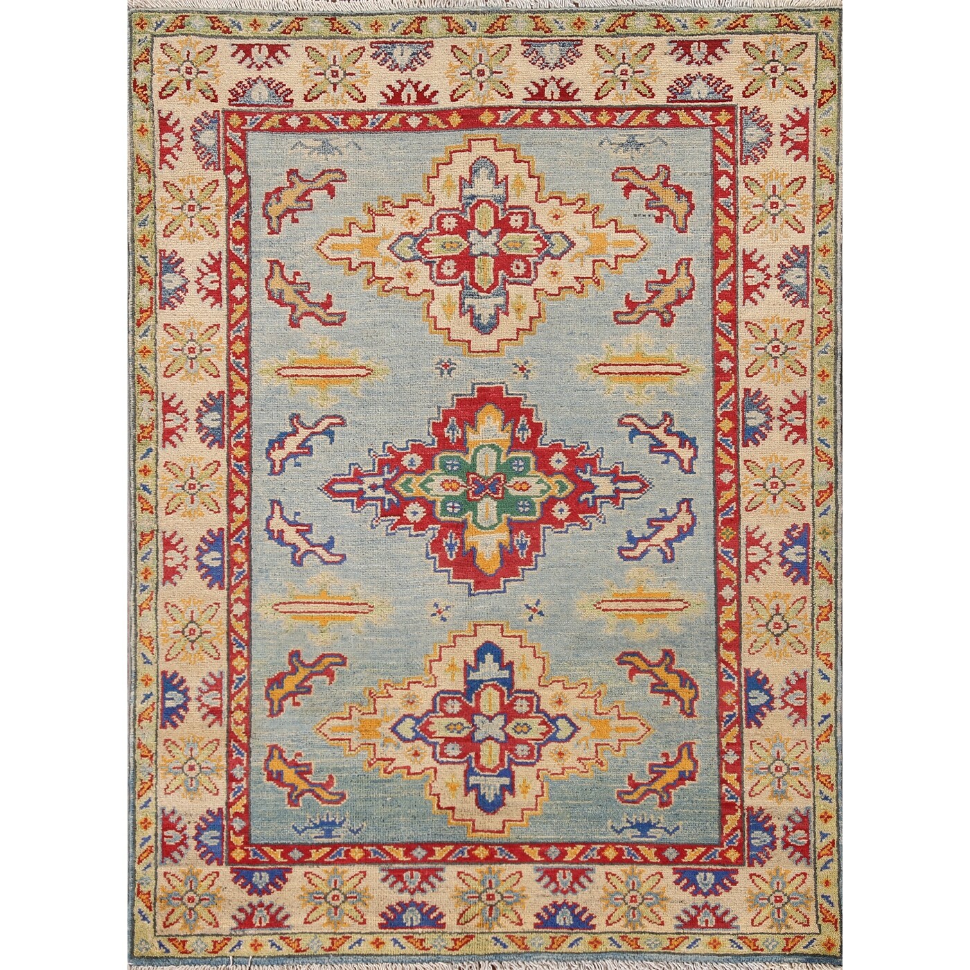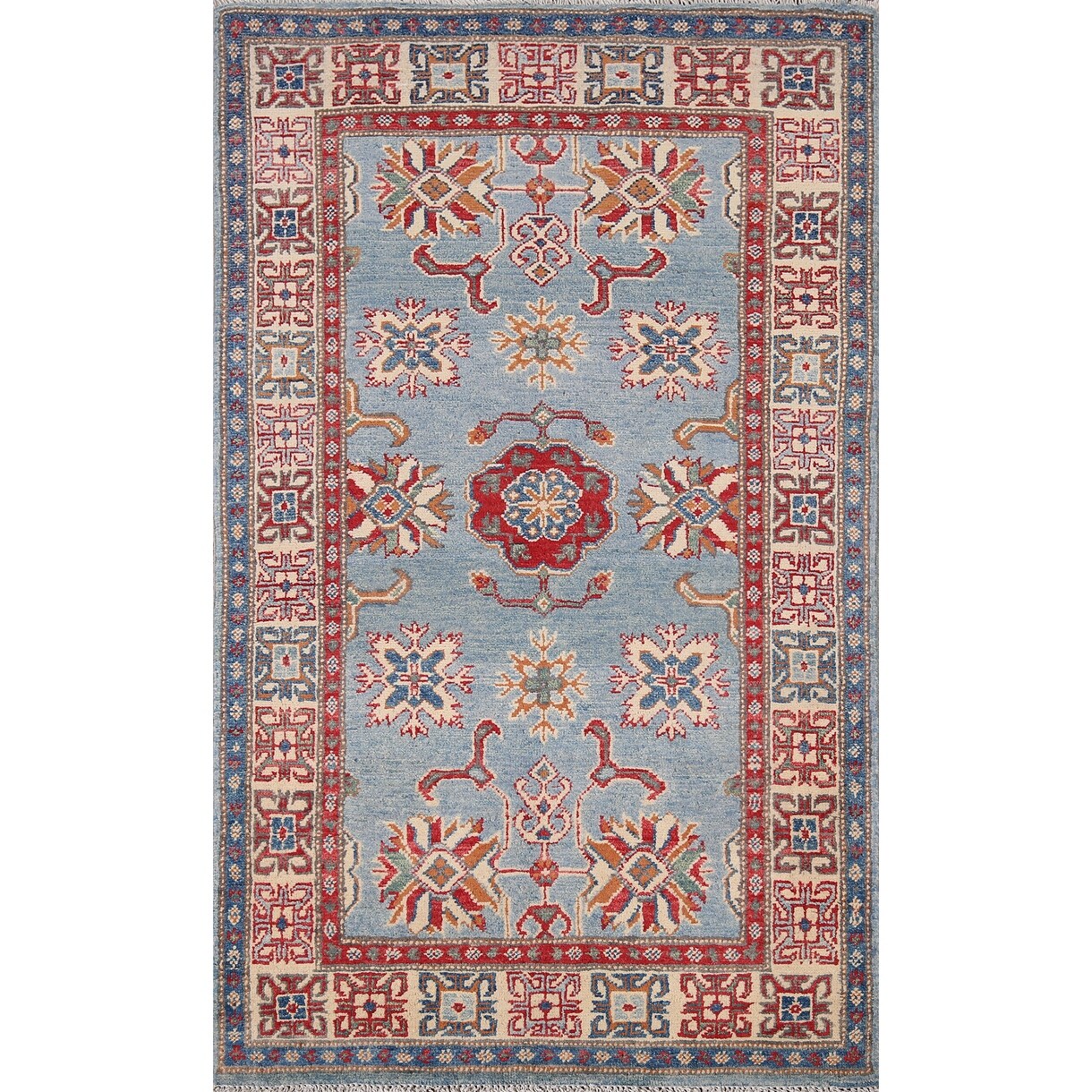 Light Blue Kazak Oriental Accent Rug Handmade Traditional Wool Carpet - 3'5"x 4'11"