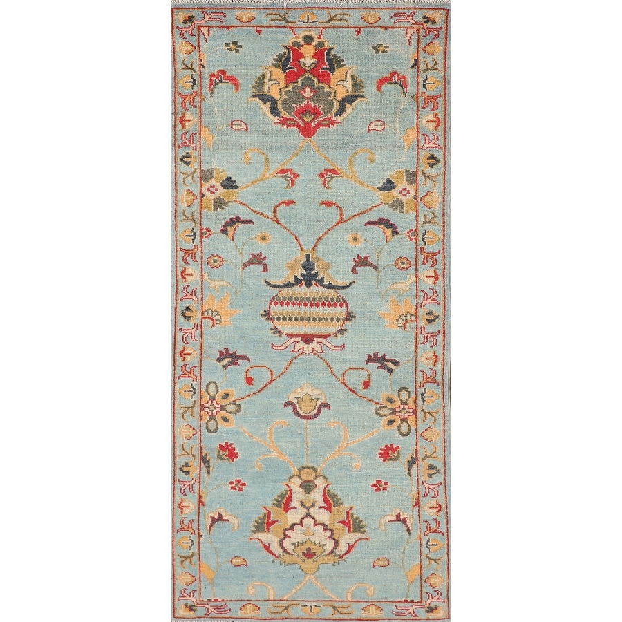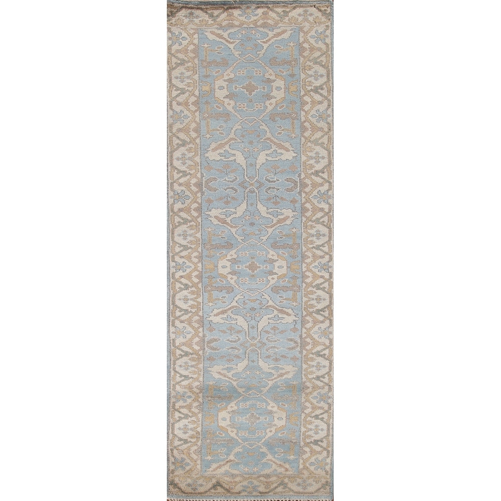 Light Blue Oushak Style Runner Rug Handmade Wool Carpet - 2'6"x 9'11"