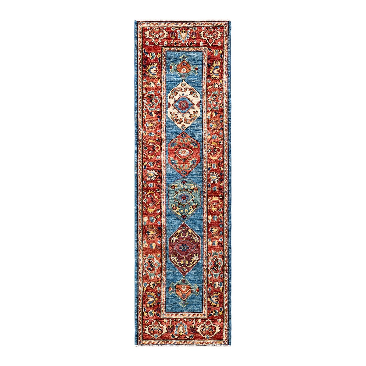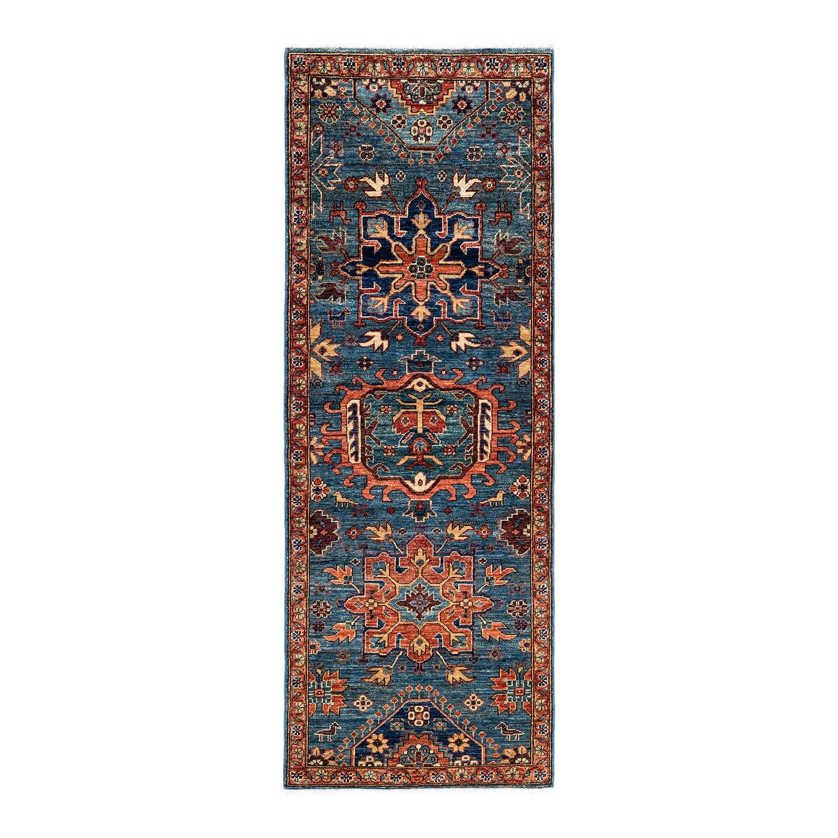 Hand Knotted Traditional Tribal Wool Light Blue Area Rug - 2' 8" x 7' 3"