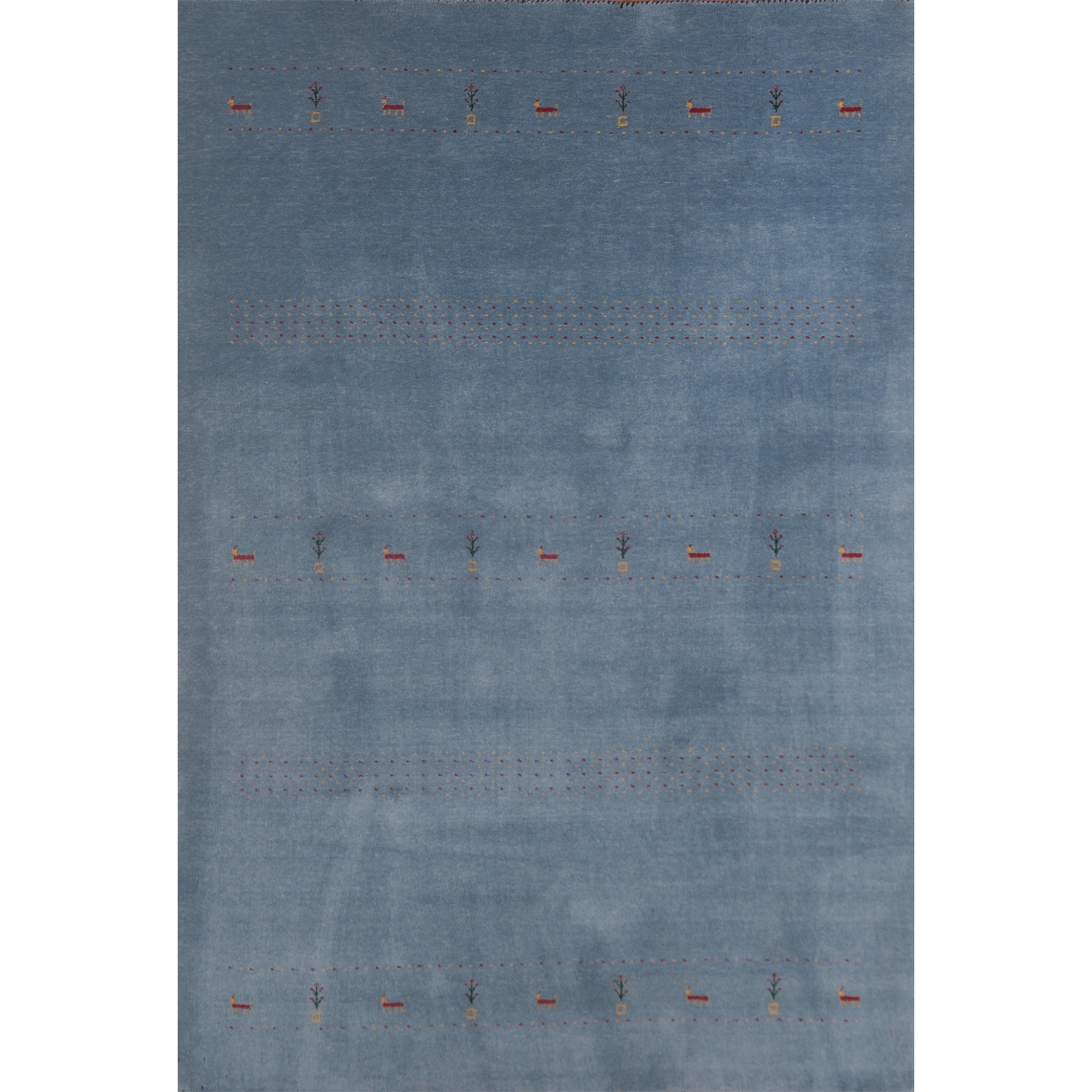 Light Blue Gabbeh Oriental Area Rug Handmade Wool Carpet - 6'8"x 9'10"