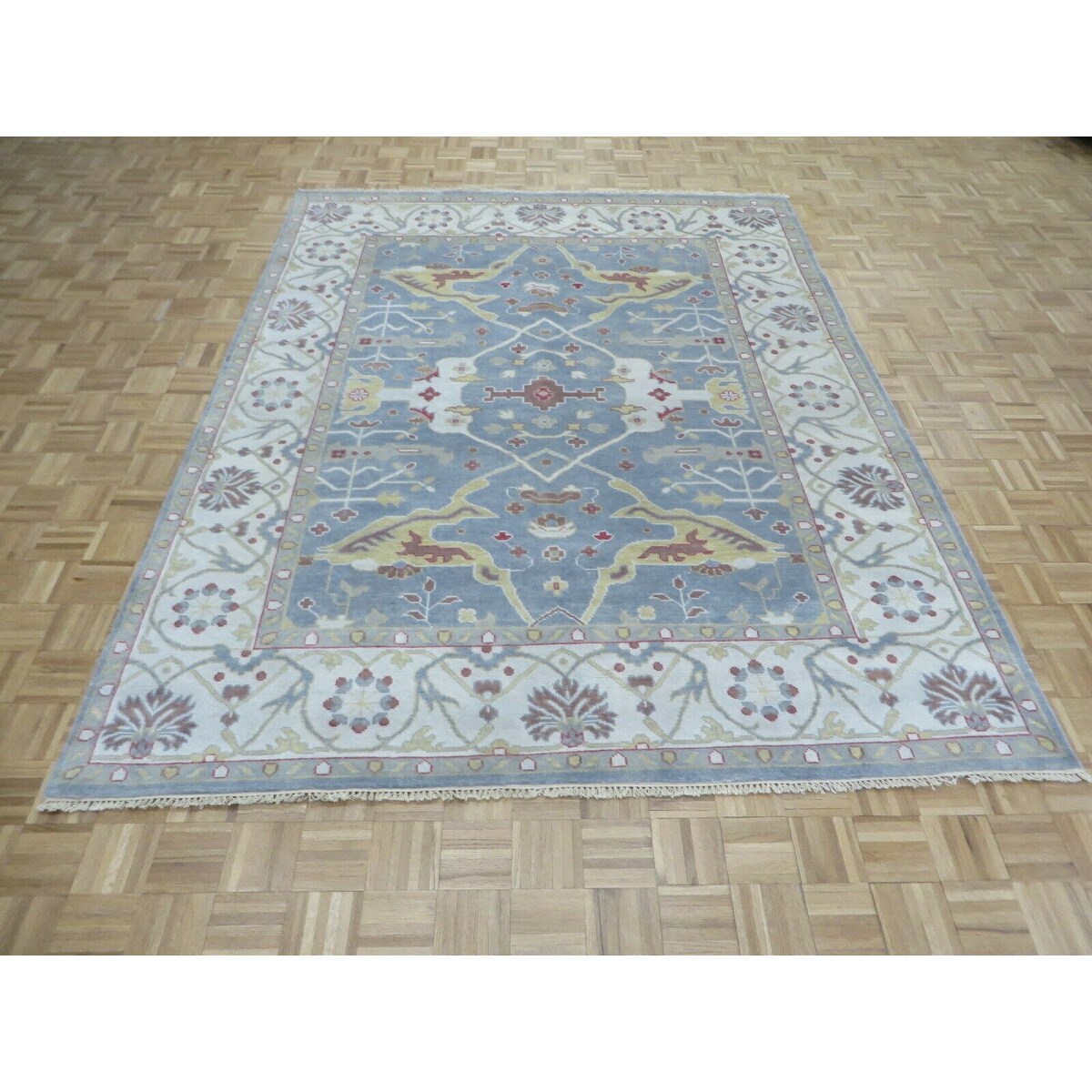 Hand Knotted Light Blue Oushak with Wool Oriental Rug (7'8" x 9'11") - 7'8" x 9'11"