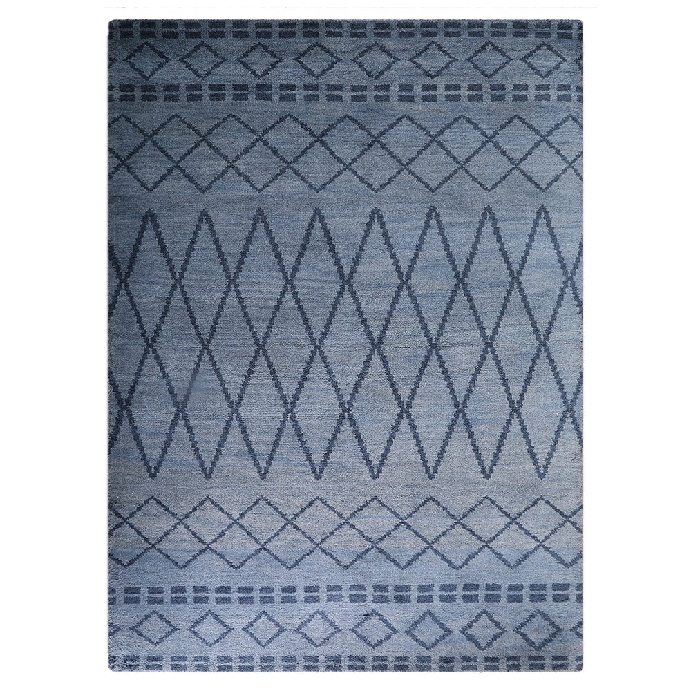 Hand Knotted Wool 6'x9' Area Rug Geometric Light Blue Blue