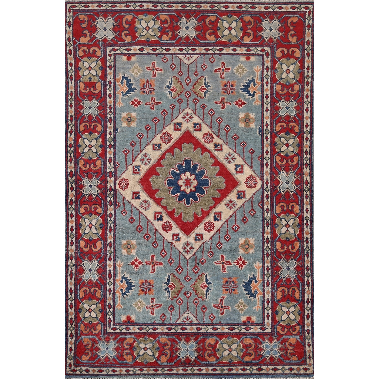Light Blue Kazak Oriental Area Rug Hand-Knotted Wool Carpet - 4'1"x 6'0"