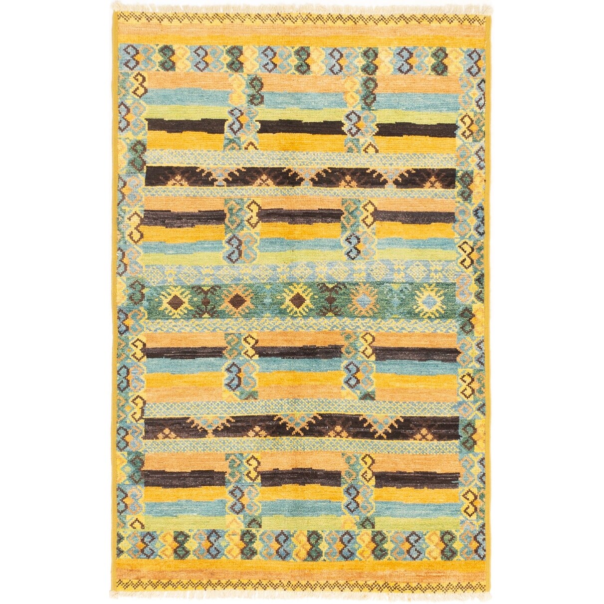 ECARPETGALLERY Hand-knotted Shalimar Gold, Light Blue Wool Rug - 5'2 x 8'0