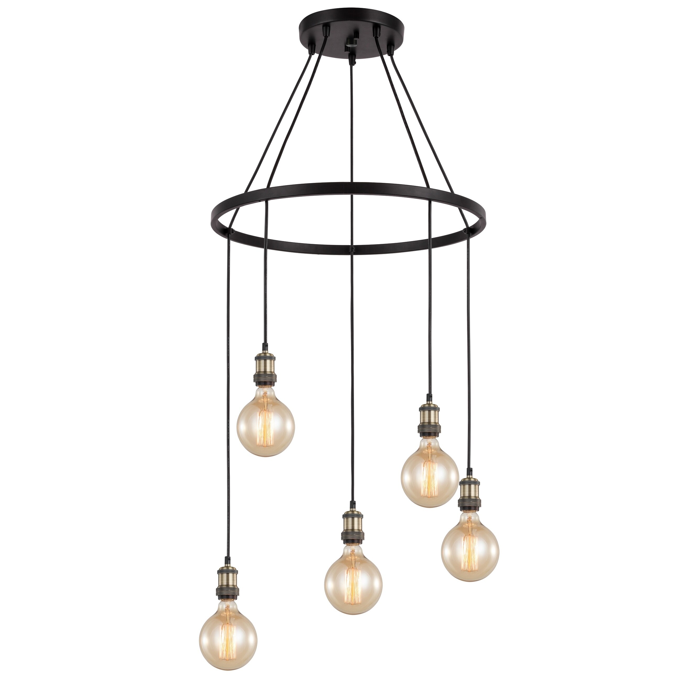Andrina Industrial 5-Light Chandelier with Exposed Bulbs - 32"H x 33"W x 33"D